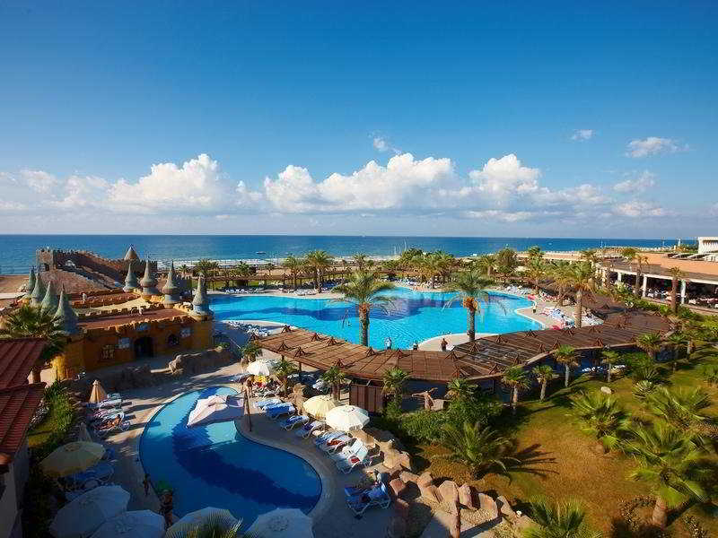 Se trata de un espacioso hotel ideal para familias rodeado de exuberantes jardines. En el edificio principal se encuentra el vestbulo, donde hay bar y mostrador de recepcin y salida 24 horas; las 363 habitaciones estn situadas en 16 chals de dos plantas dentro del recinto. El hotel cuenta con 1 restaurante principal y 2 restaurantes a la carta ms pequeos, as como con una cafetera turca y un bar de playa. El hotel cuenta tambin con un cibercaf (de pago) y tiene conexin a Internet WiFi en el vestbulo. El hotel dispone de aire acondicionado, auditorio, sala de TV, parque infantil, club infantil, instalaciones para conferencias, servicio de lavandera (de pago) y aparcamiento.