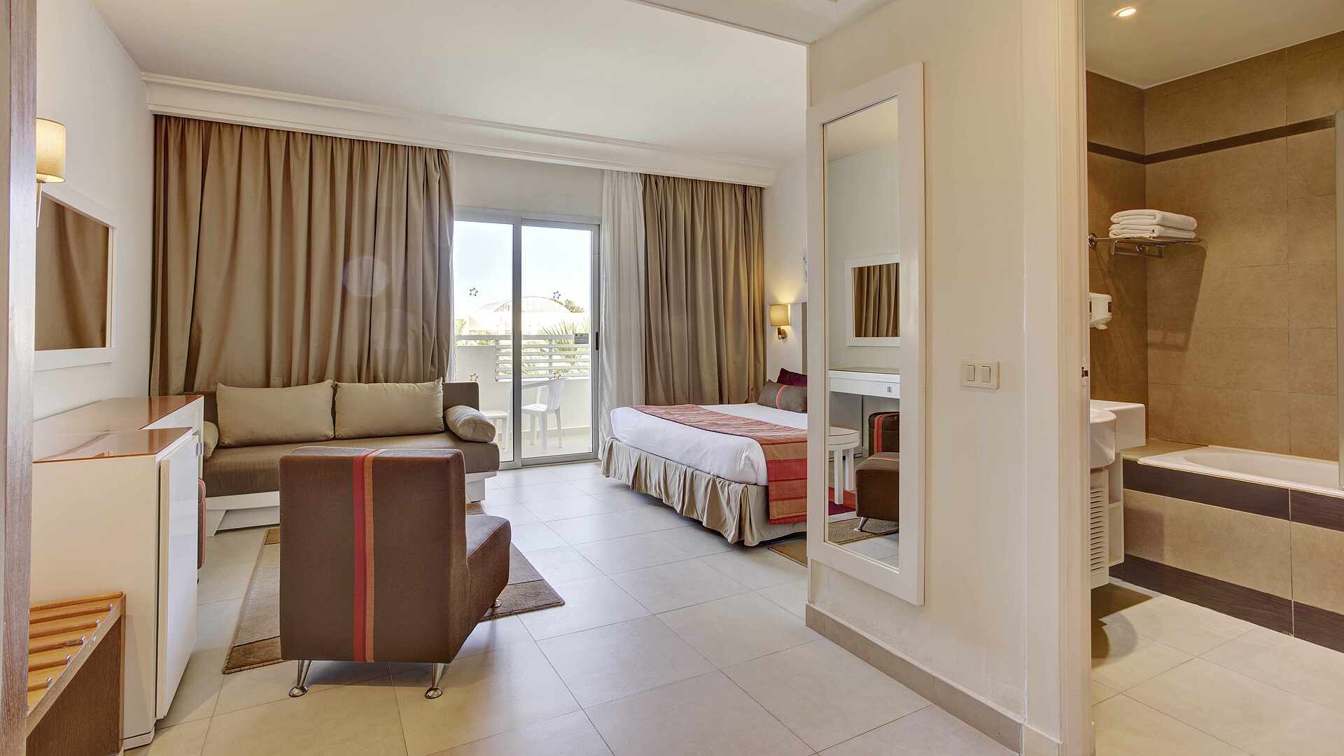 Kilómetros de playa de arena fina, un océano precioso y un complejo turístico para sentirse bien y relajarse: esto es precisamente lo que encontrará aquí, en Yerba. La amplia oferta de TUI MAGIC LIFE ofrece las mejores condiciones para unas vacaciones fantásticas en todos los sentidos. Este complejo es un sueño hecho realidad para las familias y los entusiastas del deporte. Disfrute de unas vacaciones relajantes con una oferta completa de todo incluido. Tanto si viene en pareja como en familia, aquí se sentirá de maravilla. Los coloridos mercados de Midoun y Houmt Souk son excelentes destinos para excursiones de un día. Sumérjase en el bullicio y experimente de cerca el encanto de Yerba.
