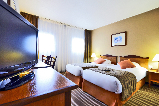 Este hotel cuenta con una ubicacion ideal, a solo 5 minutos del Disneyland Resort Paris (a 2 paradas de tren RER) y a 35 minutos del centro de Paris, en el corazon de Bussy-Saint-Georges, enfrente de la estacion de trenes. Los centros comerciales Val dEurope y La Vallee Outlet Shopping Village estan a 5 minutos en coche. Esta cerca de la A4, con lo cual Porte de Bercy, los aeropuertos de Orly y Charles de Gaulle y el recinto ferial Villepinte, son facilmente accesibles y estan situados en un radio de 25 km.Este hotel dispone de un total de 87 habitaciones repartidas en 5 plantas. El hall de entrada tiene un area de recepcion abierta las 24 horas, donde se le ofrece servicio de caja fuerte, de cambio de divisas y ascensor. El hotel alberga un bar y el restaurante LOlivier, que sirve desde los platos mas tradicionales de la cocina francesa hasta pizzas y pasta. A disposicion de los huespedes hay 3 salas de reuniones con luz natural y modernas instalaciones. Como prestaciones adicionales encontrara el servicio de lavanderia y conexion a Internet. El hotel cuenta con un garaje subterraneo de pago.Las confortables habitaciones estan insonorizadas y disponen de bano con secador de pelo y WC separado, telefono de linea directa, TV via satelite y conexion inalambrica a Internet. El aire acondicionado y la calefaccion son regulables. Hay habitaciones con cama doble o dos camas, habitaciones triples con una cama doble y una individual y habitaciones para 4 personas con una cama doble y 2 individuales.Hay un campo de golf a 1 km del hotel.Todas las mananas se ofrece desayuno en forma de bufet. A la hora de la comida y de la cena puede elegir a la carta o un menu. El restaurante esta abierto de lunes a viernes para el almuerzo y la cena, y los sabados por la noche. Hay menus especiales para ninos.