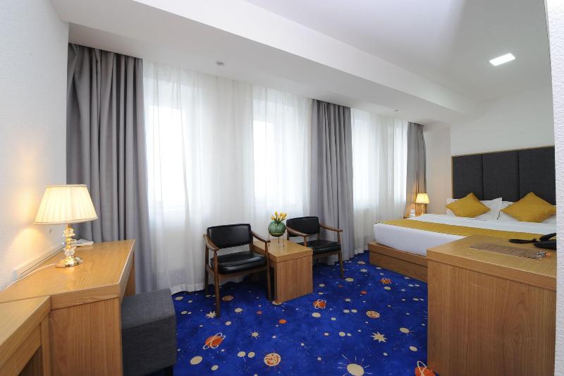 Alójate en el UB Grand Hotel en Ulán Bator (centro de Ulán Bator) y estarás a 5 minutos a pie de la Plaza Sükhbaatar y del Palacio de Gobierno. Este hotel se encuentra a 0, 2 km de la Universidad Nacional de Mongolia y a 0, 4 km del Museo de Historia Natural de Mongolia. Aprovecha las comodidades que te ofrece el hotel, como acceso a internet inalámbrico de cortesía y asistencia turística y para la compra de entradas. Tendrás a tu disposición un centro de negocios, servicio de tintorería/lavandería y recepción disponible las 24 horas. Este hotel pone a tu disposición 20 salas de reuniones para celebrar eventos. Se ofrece servicio de transporte al aeropuerto (ida y vuelta) de pago (disponible las 24 horas), y hay un aparcamiento sin asistencia gratuito disponible. Disfruta de una comida en el restaurante o quédate en tu habitación y aprovecha el servicio de habitaciones del hotel (con horario limitado). Te sentirás como en casa en una de las 45 habitaciones con aire acondicionado, chimenea y televisión LCD. Dispondrás de conexión a internet inalámbrica gratis para mantenerte conectado. Las comodidades incluyen teléfono, escritorio y periódicos gratuitos entre semana.