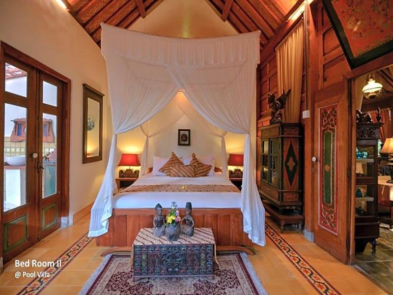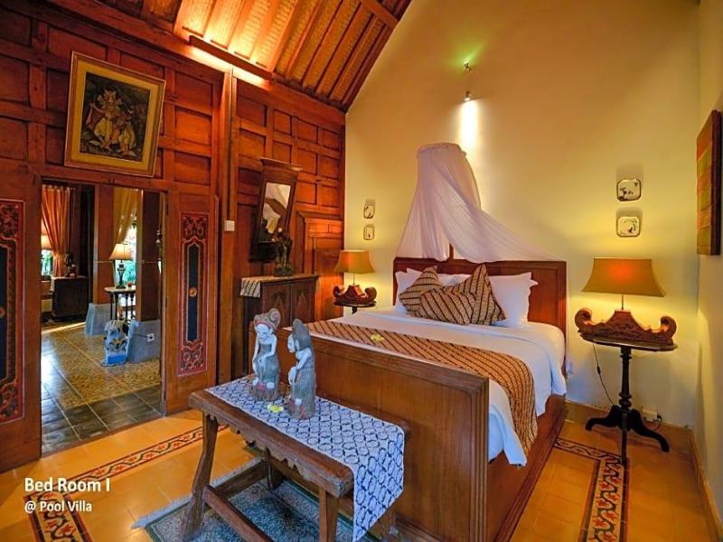 Ubud Syailendra Villas es una villa privada de lujo en Ubud, que ofrece una vista panorámica incomparable de los arrozales y las montañas. Ubicada a solo 10 minutos del centro de Ubud, esta villa de 150 años de antigüedad exhibe la auténtica arquitectura javanesa 'Joglo' y cuenta con muebles antiguos de alta calidad. La villa incluye dos dormitorios con baño en suite y duchas exteriores independientes, una espaciosa sala de estar con un techo Joglo bellamente elaborado, una cocina, un comedor abierto con terraza, una piscina privada y terraza solárium, y un jardín tropical privado.