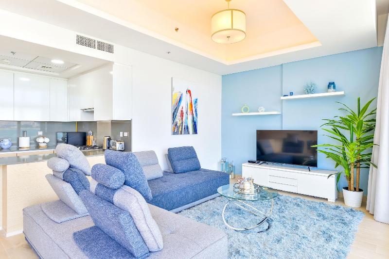 Disfruta de una lujosa escapada frente al mar en el apartahotel Ultra Luxury Palm - Mina Azizi Beachfront en Palm Jumeirah, Dubái. Relájate en la playa privada o date un refrescante chapuzón en la piscina al aire libre. Cada una de las cinco habitaciones, decoradas individualmente, cuenta con piscina privada, balcón amueblado y Smart TV con canales por cable. Una cocina americana totalmente equipada con nevera/congelador grande, horno y placa de cocina aumenta tu comodidad. El apartahotel se encuentra a poca distancia en coche del Dubai Marina Mall y de Marina Beach, lo que te ofrece fácil acceso a las mejores tiendas y opciones de entretenimiento.