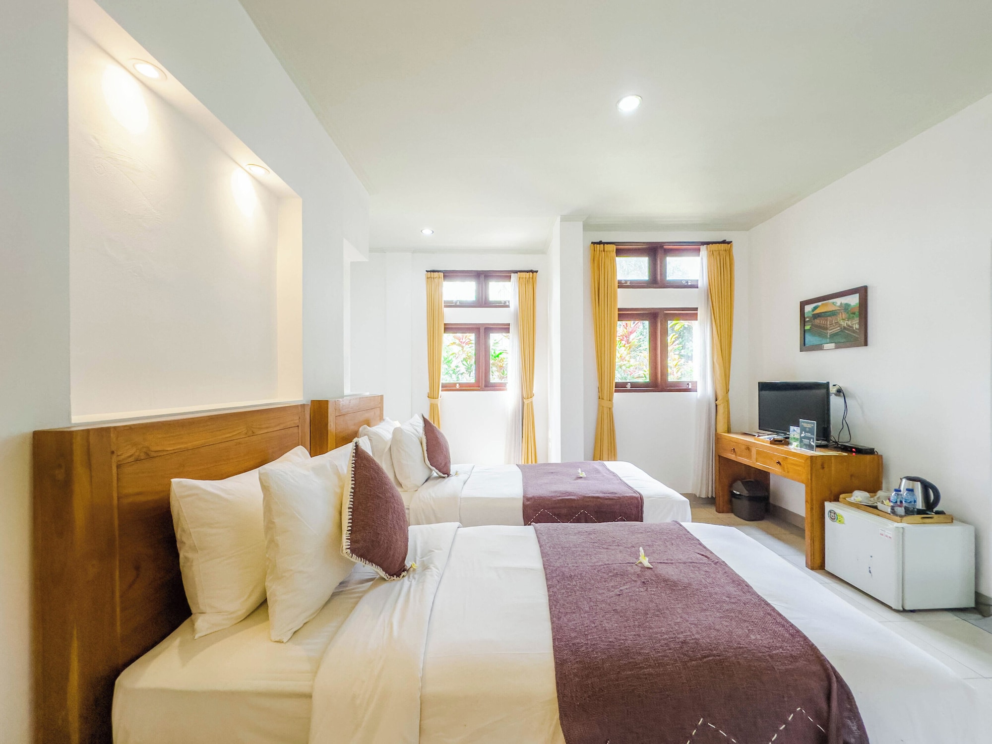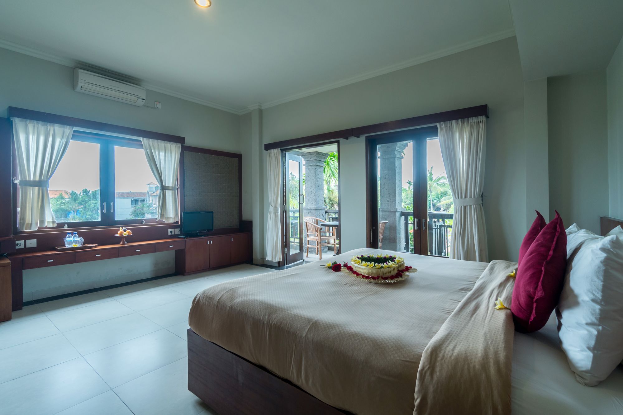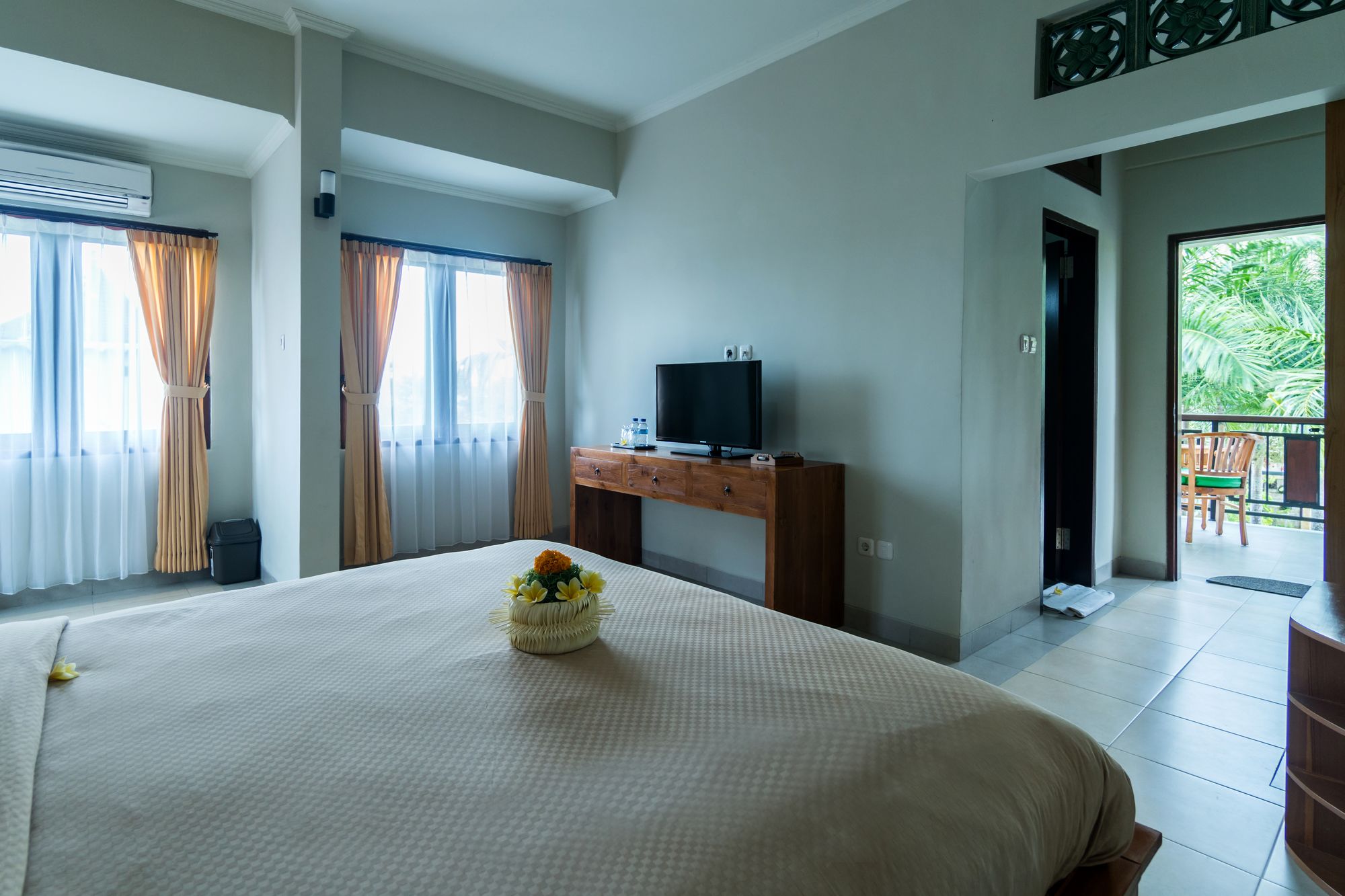 Uma Dana Ubud te permite disfrutar de una ubicación estupenda en Sayan, en el casco histórico y a poca distancia de Museo Antonio Blanco y Bosque de monos de Ubud. Este hotel se encuentra cerca de Museo Puri Lukisan y de Pura Taman Saraswati.Habitaciones Te sentirás como en tu propia casa en una de las 10 habitaciones con aire acondicionado y televisor LCD. Las camas cuentan con colchones con una capa de acolchado adicional para descansar plácidamente. Las habitaciones disponen de patio. Para los momentos de ocio, tienes un televisor con canales por satélite y conexión a Internet por cable y wifi gratis. El baño privado con ducha y bañera combinadas está provisto de bañera de agua termal y artículos de higiene personal gratuitos.Servicios Con piscina al aire libre y muchas otras instalaciones recreativas a tu disposición, no te quedará ni un minuto libre. Tienes también una terraza y jardín donde sentarte a contemplar el paisaje. Se ofrece además conexión a Internet wifi gratis, servicios de conserjería y área de picnic.Para comer Tienes un restaurante a tu disposición para comer algo en Uma Dana Ubud.Servicios de negocios y otros Tendrás conexión a Internet de alta velocidad por cable (gratuita), periódicos gratuitos en el vestíbulo y servicio de tintorería a tu disposición. Pagando un pequeño suplemento podrás aprovechar prestaciones como servicio de transporte al aeropuerto (ida y vuelta) (disponible las 24 horas) y aparcamiento sin asistencia gratuito.