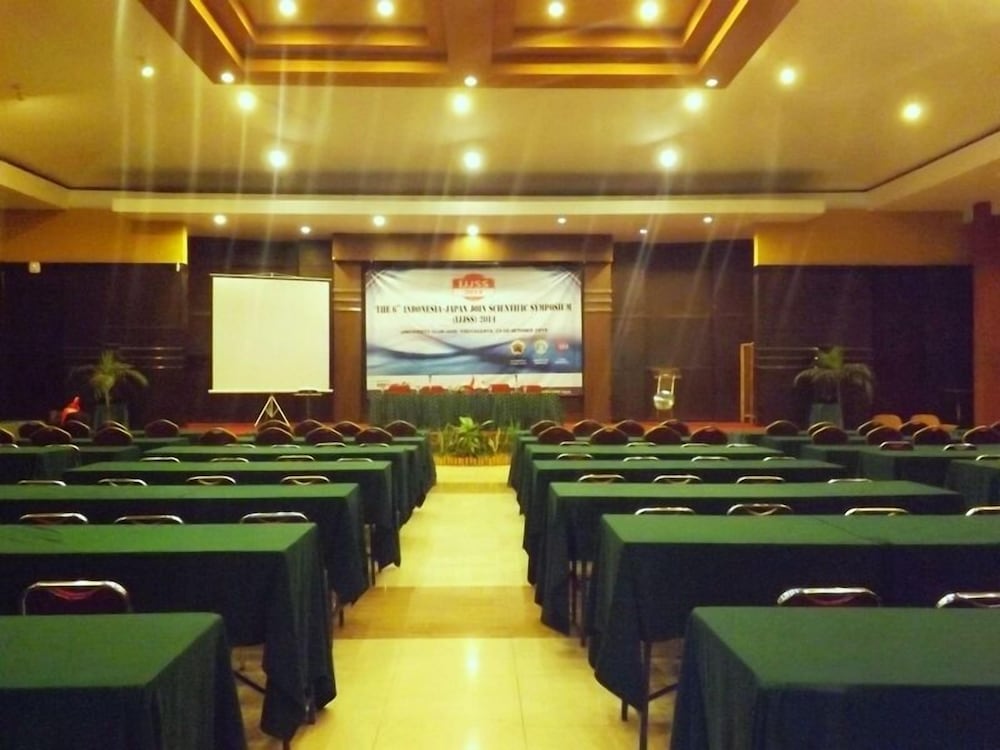 Este hotel se encuentra cerca de Palacio Pakualaman y de Palacio de Yogyakarta. Si te alojas en University Club Hotel UGM, en Yogyakarta (Gondomanan), estarás a pocos minutos de Museo Sasmitaloka Panglima Besar Jenderal Sudirman y Taman Pintar Science Park.Habitaciones Te sentirás como en tu propia casa en una de las 71 habitaciones con aire acondicionado y televisor LED. La conexión a Internet wifi gratis te mantendrá en contacto con los tuyos; también podrás ver tu programa favorito en el televisor con canales por cable. El baño privado con ducha está provisto de artículos de higiene personal gratuitos y zapatillas. Las comodidades incluyen escritorio y cafetera y tetera, además de un servicio de limpieza disponible todos los días.Servicios Con bicicletas de alquiler y muchas otras instalaciones recreativas a tu disposición, no te quedará ni un minuto libre. Tienes también una terraza y jardín donde sentarte a contemplar el paisaje.Para comer Si tienes hambre, pasa por el restaurante de este hotel, que ofrece desayunos, almuerzos y cenas. También hay una cafetería y servicio de habitaciones con horario limitado.Servicios de negocios y otros Tendrás centro de negocios abierto las 24 horas, periódicos gratuitos en el vestíbulo y servicio de tintorería a tu disposición. Pagando un pequeño suplemento podrás aprovechar prestaciones como servicio de transporte al aeropuerto (ida y vuelta) (disponible las 24 horas) y aparcamiento sin asistencia gratuito.