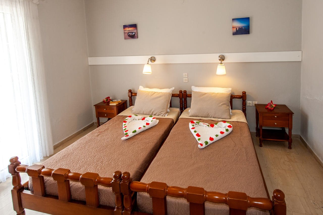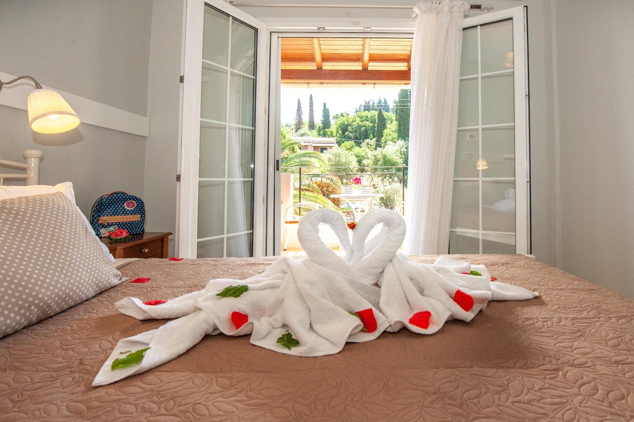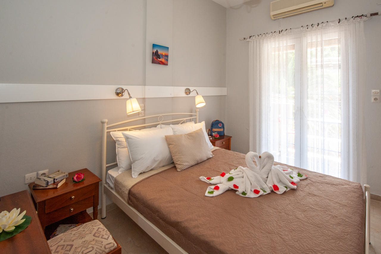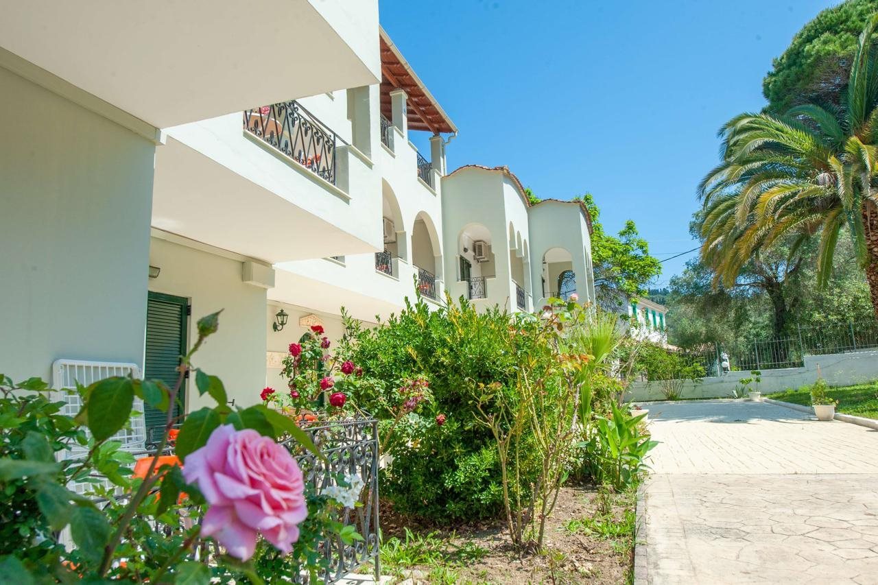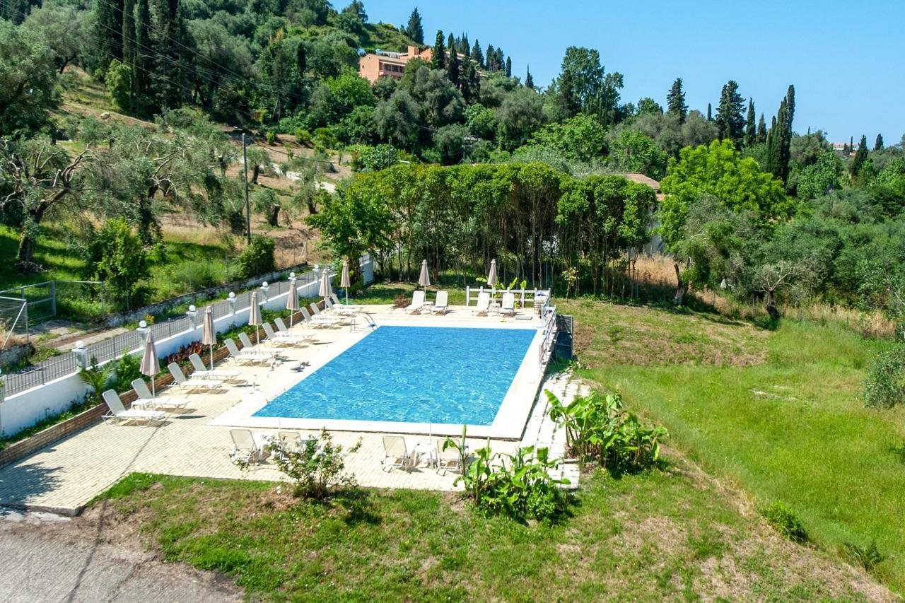 Facilities and services include air conditioning, car parking, free Wi-Fi, an outdoor pool, and Sat TV.The rooms feature air conditioning, a flat-screen Sat TV, WiFi, a kitchenette, a fridge, a coffee/teamaker, and a hairdryer.Address: Agios Georgios Pagon, Corfu, 49083 Greece