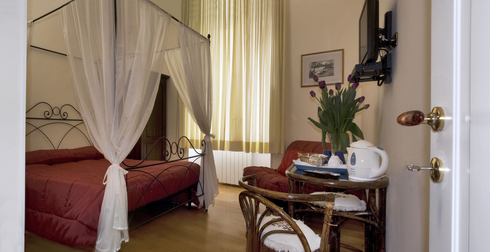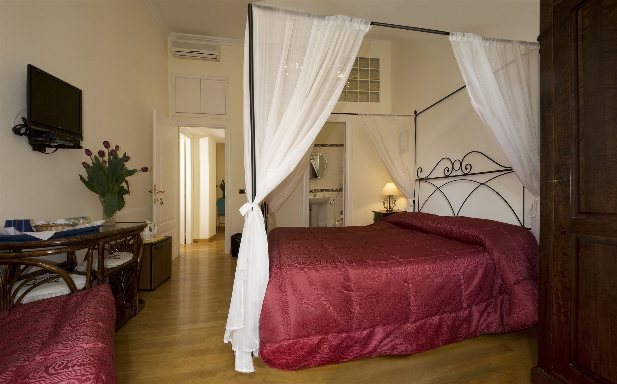 Alojándote en Vatican Suites Inn estarás en pleno corazón de Roma, a pocos minutos de Museos Vaticanos y de Basílica de San Pedro. Este hostal se encuentra cerca de Capilla Sixtina y de Plaza de San Pedro.Habitaciones Te sentirás como en tu propia casa en una de las 3 habitaciones con aire acondicionado, frigorífico y televisor LCD. La conexión a Internet wifi gratis te mantendrá en contacto con los tuyos; también podrás ver tu programa favorito en el televisor con canales por satélite. El baño privado con ducha está provisto de artículos de higiene personal gratuitos y bidé. Las comodidades incluyen cafetera y tetera y botella de agua gratuita, además de un servicio de limpieza disponible todos los días.Servicios Aprovecha los prácticos servicios que se te ofrecen, como conexión a Internet wifi gratis o asistencia turística y para la compra de entradas.Servicios de negocios y otros Tendrás check-in rápido, check-out rápido y atención multilingüe a tu disposición. Se ofrece servicio de transporte desde el aeropuerto hasta el hotel de pago a petición.