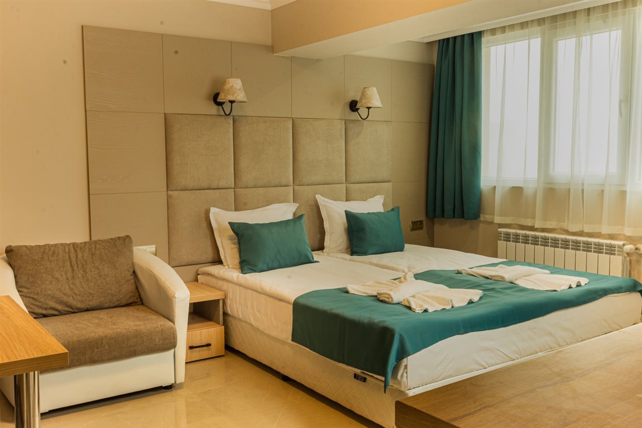 Facilities and services include free Wi-Fi, 24hr reception, air conditioning, internet access, restaurant, bar, swimming pool, spa facilities (extra charge), conference room, safe box reception (extra charge), elevator, and parking. Rooms feature free Wi-Fi, air conditioning, TV, balcony/terrace, kitchenette, fridge, mini bar, microwave, coffee/tea maker, hairdryer, and telephone.Address: Arh.Manol Yordanov Str 16 Varna City 9000 Bulgaria