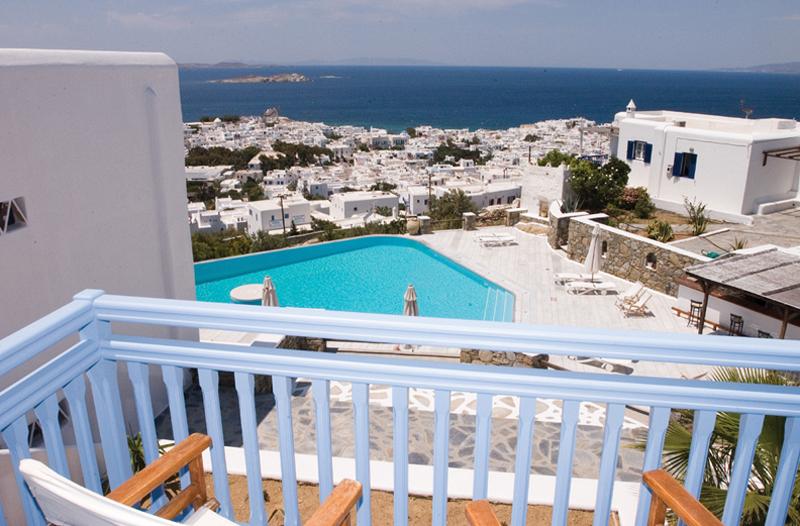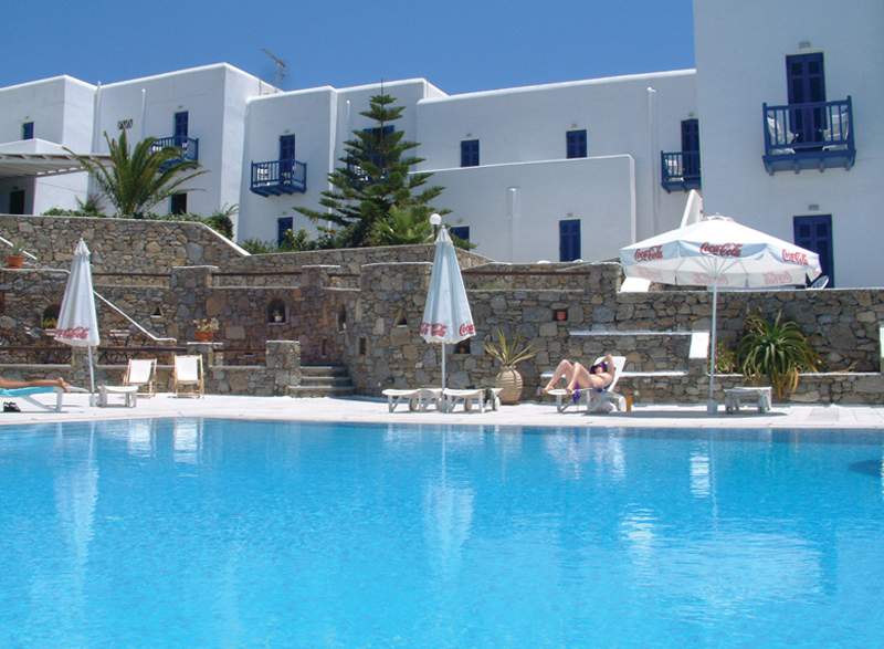Ubicación - Este hotel se encuentra en la ciudad de Miconos, a unos 500 m del centro, a 3 km del aeropuerto y a 1,5 km del puerto. El edificio se encuentra sobre una colina y le ofrece vistas fantásticas de la ciudad y del puerto.. Instalaciones - El hotel fue construido en el año 1985. El alojamiento ofrece a los huéspedes un total de 31 habitaciones. En el establecimiento climatizado los huéspedes son recibidos en el vestíbulo con servicio de recepción las 24 horas y servicio de registro y salida las 24 horas. Las instalaciones incluyen una caja fuerte. La conexión Wi-Fi en las zonas públicas permite a los viajeros mantenerse en contacto con el mundo exterior. En cuanto a opciones gastronómicas, el hotel cuenta con un restaurante, un comedor, una sala de desayunos, una cafetería y un bar. Además, hay un jardín. Las instalaciones del alojamiento incluyen una sala de TV. Aquellos que viajen con vehículo propio pueden dejarlo en el aparcamiento del establecimiento. La oferta disponible incluye servicio de habitaciones y una lavandería. Los huéspedes más activos, con ganas de descubrir los alrededores en bicicleta, sabrán apreciar el servicio de alquiler de bicicletas.. Habitaciones - Se ofrecen habitaciones con aire acondicionado y un cuarto de baño. En la mayoría de las habitaciones es posible disfrutar de las vistas desde un balcón. La ventaja de algunos alojamientos es la vista lateral al mar. Además, hay una caja fuerte. Para disfrutar de una estancia agradable, también se ofrecen una nevera y una mini nevera. El equipamiento se completa con conexión a Internet, un teléfono, un televisor, una radio y Wi-Fi. Las comodidades de las habitaciones también incluyen zapatillas de casa. El cuarto de baño cuenta con una ducha. Hay a disposición un secador de pelo y albornoces para el uso diario. El hotel ofrece habitaciónes familiares y habitaciones de no fumadores.. Deporte y ocio - El alojamiento dispone de una piscina y una piscina al aire libre. También hay una terraza disponible, así como tumbonas y sombrillas. También hay un bar de piscina. En la zona de ocio, el establecimiento ofrece spa y masajes, así como, por un cargo extra, equitación, submarinismo y salón de belleza. Se ofrece un programa de entretenimiento para niños. Copyright GIATA 2004 - 2016. Multilingual. Comidas - Se pueden reservar diversos servicios gastronómicos. Los huéspedes pueden escoger entre alojamiento con desayuno, media pensión y pensión completa. Se prepara desayuno, almuerzo y cena. Además, el hotel cuenta con aperitivos.. Tarjetas de crédito - En el alojamiento se aceptan las siguientes tarjetas de crédito: American Express, Visa y MasterCard..