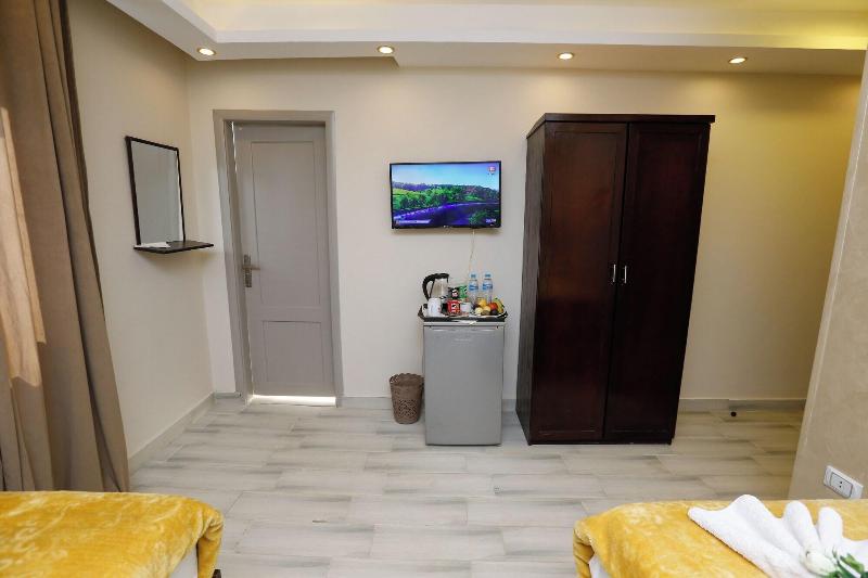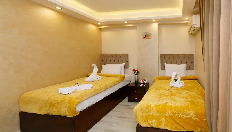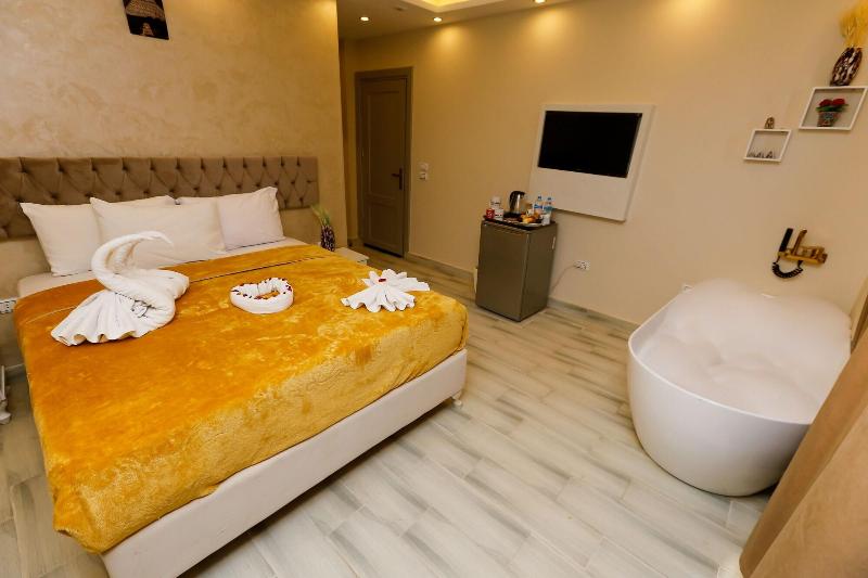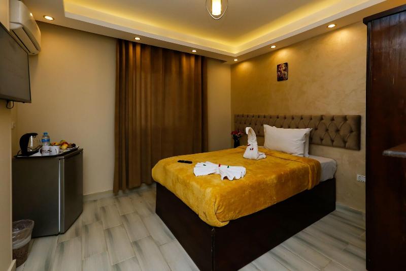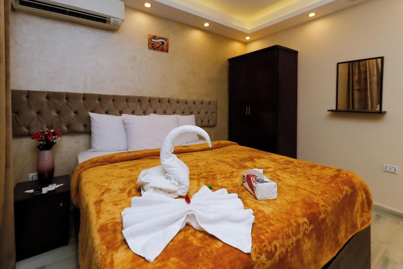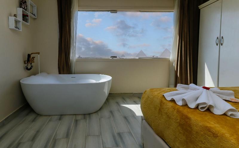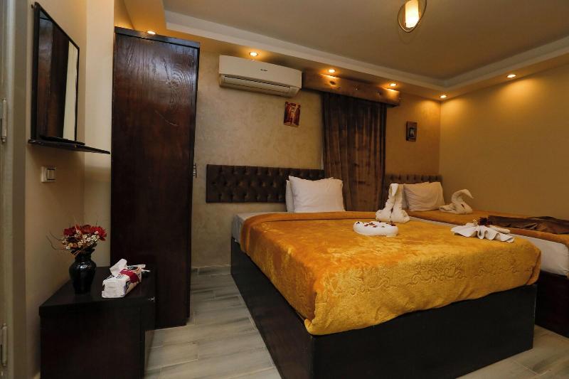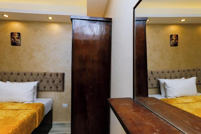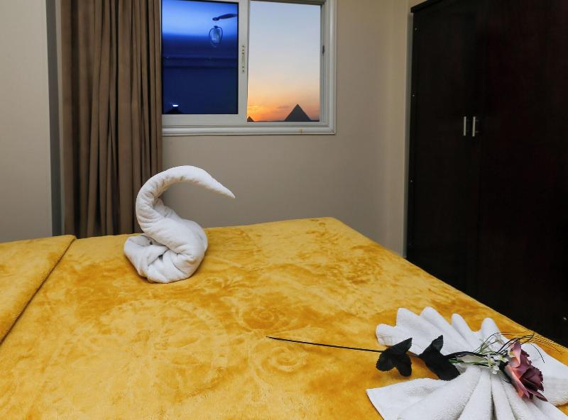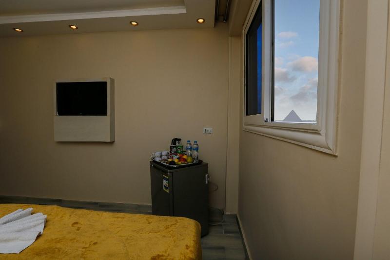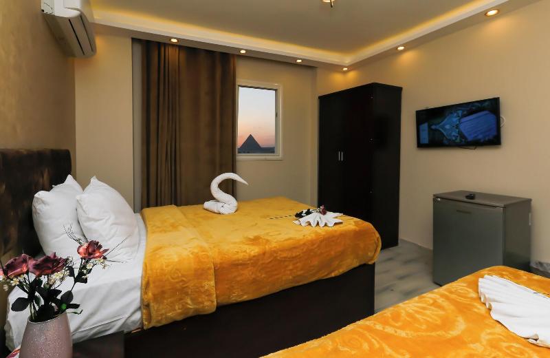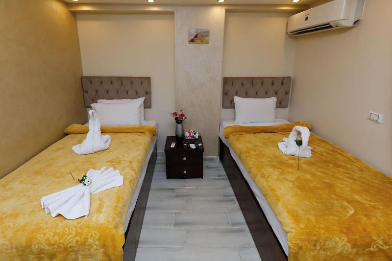 Consiéntete con masajes, tratamientos corporales y faciales en las instalaciones. Se sirve un desayuno continental gratuito todos los días, de 7:00 a. m. a mediodía. Tendrás a tu disposición check-in exprés, check-out exprés y recepción disponible las 24 horas. Se ofrece servicio de transporte al aeropuerto (ida y vuelta) de pago (disponible las 24 horas). Ponte cómodo en una de las 9 habitaciones con aire acondicionado y televisión LCD. La conexión a internet wifi gratis te mantendrá en contacto con los tuyos; también podrás ver tu programa favorito en la televisión con canales por satélite. El baño privado está provisto de cabezal de ducha tipo lluvia y artículos de tocador de diseño. Entre las comodidades, se incluyen hervidor eléctrico y té y café instantáneo gratuitos, además de un servicio de limpieza disponible previa solicitud. Las distancias se expresan en millas y kilómetros, redondeadas a 0. 1. Meseta de Guiza: 1. 7 km / 1 mi- Teatro de Luz y Sonido: 1. 7 km / 1. 1 mi- Complejo de pirámides de Guiza: 1. 9 km / 1. 2 mi- Gran Esfinge de Guiza: 2 km / 1. 3 mi- Pirámide de Keops: 2. 9 km / 1. 8 mi- Pirámide de Jufu: 3. 1 km / 1. 9 mi- Pirámide de Micerino: 3. 2 km / 2 mi- Pirámide de Kefrén: 3. 4 km / 2. 1 mi- Museo Taha Hussein: 7. 1 km / 4. 4 mi- Gran Museo Egipcio: 7. 3 km / 4. 6 mi- Nilo: 9 km / 5. 6 mi- Aldea faraónica del Dr. Ragab: 9. 5 km / 5. 9 mi- Hospital Nile Badrawi: 9. 8 km / 6. 1 mi- Museo Egipcio de Geología: 10 km / 6. 2 mi- Universidad de El Cairo: 10. 1 km / 6. 2 mi. Los aeropuertos más cercanos son: Aeropuerto Internacional de El Cairo (CAI): 47. 1 km / 29. 3 mi Giza (SPX-Sphinx Intl. ): 37. 1 km / 23 mi Venus Pyramids Inn goza de una ubicación céntrica en Guiza, a 5 min en coche de Complejo de pirámides de Guiza y Gran Esfinge de Guiza. Este apartotel de lujo se encuentra a 3. 4 km de Pirámide de Jufu y a 7. 3 km de Gran Museo Egipcio.
