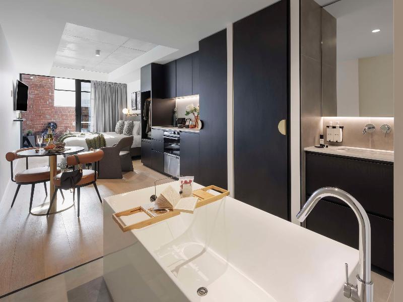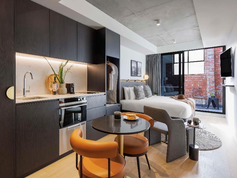 Desarrollado en asociación con la promotora inmobiliaria de lujo GURNER™, Veriu Collingwood traerá la arquitectura inspirada en el Soho neoyorquino a uno de los barrios más vibrantes de Melbourne: Collingwood. Ubicado en Johnston Street, este hotel de 95 habitaciones incluye servicios como un bar en la azotea con piscina climatizada, gimnasio, espacio de trabajo en el lobby, despensa, habitaciones con cocina y lavandería, y salas de conferencias. Déjate sorprender por el look industrial a medida con modernas paletas de colores y espacios cuidadosamente diseñados que priorizan la funcionalidad y la comodidad. Cada microapartamento cuenta con una cocina totalmente equipada con horno, lavavajillas, placa de cocina, cafetera Nespresso y frigorífico, lo que lo hace ideal para estancias cortas o largas. Algunos microapartamentos cuentan con balcón con comedor exterior y vistas a un jardín de invierno para que tú y tus acompañantes podáis relajaros y recargar energías al final del día.