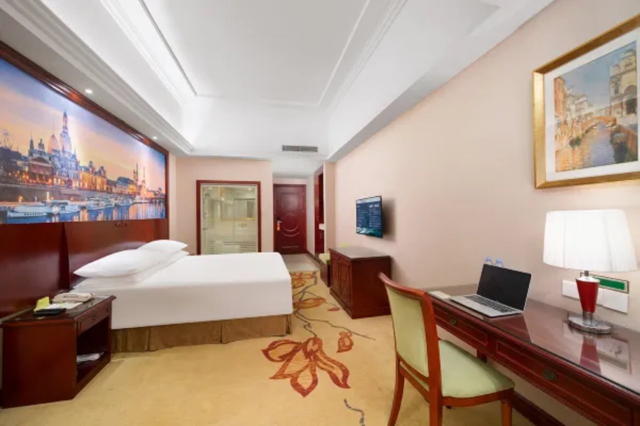 Facilities and services include Wi-Fi, Restaurant, Meeting Room, Fitness Room, Luggage Storage, Safe, Room Service, Elevator, Laundry Service, and Parking.Rooms feature Free Wi-Fi, Air Conditioning, TV, Telephone, Desk, Hair Dryer and Private Bathroom.Address: Shide Building, Huaibei Road Dongguan China