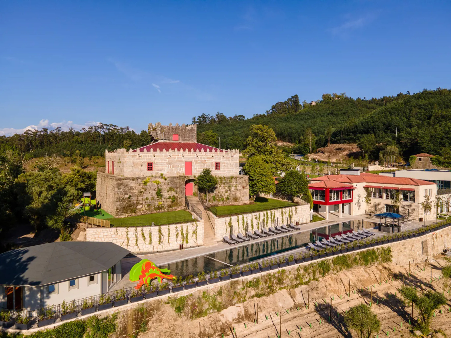 El hotel Vila Gale Collection Ponte de Lima Vineyards cuenta con una recepción abierta las 24 horas del día, un bar en el vestíbulo, conexión WiFi, conexión a Internet así como aparcamiento. En la parte exterior hay una piscina climatizada (abierto todo el año). Aquí hay también una piscina para niños. Para los niños hay un parque infantil. Para la limpieza de su ropa hay a su disposición un servicio de lavandería (de pago).