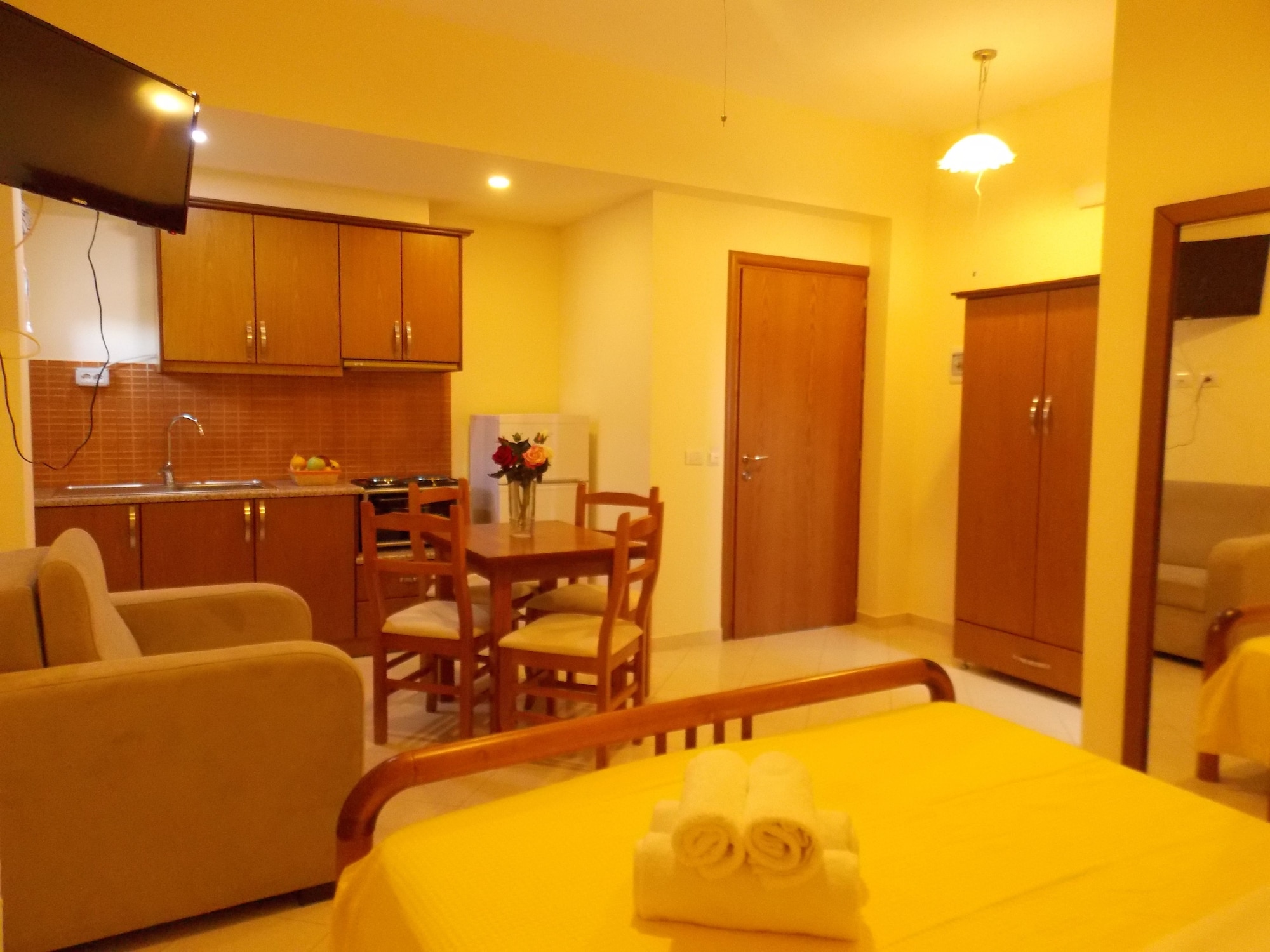 Este apartotel de Ksamil está a menos de 15 minutos en coche de Parque Nacional Butrint y Butrinto. Además, este apartotel se encuentra a 44,4 km de Puerto de Corfú y a 5,8 km de Castillo de Ali Pasha. Regálate una estancia fantástica en este apartamento donde, además de aire acondicionado, tendrás una cocina básica perfectamente equipada con frigorífico y horno. Disfrutarás de conexión gratuita a Internet wifi o por cable, así como de un televisor de pantalla plana con multitud de canales por cable. Tendrás una caja fuerte y una tabla de planchar. El servicio de limpieza se ofrece todos los días. Con una terraza y jardín donde descansar y comodidades como conexión a Internet wifi gratis, ¡no te faltará de nada! Se ofrece además una zona de pícnic y una zona para barbacoas. Este apartotel pone a tu disposición una cafetería. Qué mejor forma de acabar el día que con una bebida en el bar o lounge. Tendrás conexión a Internet por cable gratis, tintorería o lavandería y un servicio de recepción las 24 horas a tu disposición. Hay un aparcamiento sin asistencia gratuito disponible.