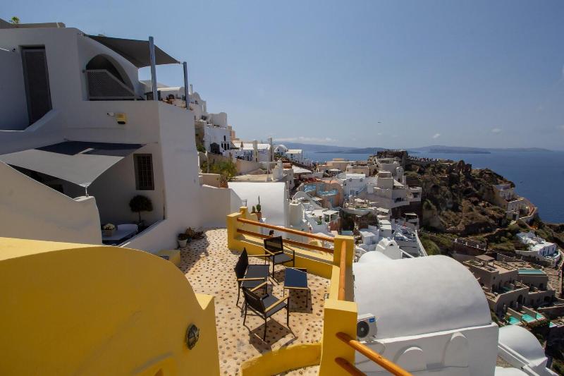 Disfruta de impresionantes vistas a la caldera desde tu balcón o patio privado amueblado en Villa Ariadni, una encantadora casa de huéspedes en Santorini, a pocos pasos del Castillo de Oia y la playa. Cada una de las tres habitaciones cuenta con un televisor de pantalla plana de 31 pulgadas con canales por satélite y wifi gratis. Los baños incluyen duchas, artículos de tocador de diseño y secadores de pelo. La casa de huéspedes también está convenientemente ubicada cerca de la Mnemossyne Gallery y el Maritime Museum, con el Aeropuerto Nacional de Santorini (JTR) a 17, 2 km (10, 7 millas) de distancia.