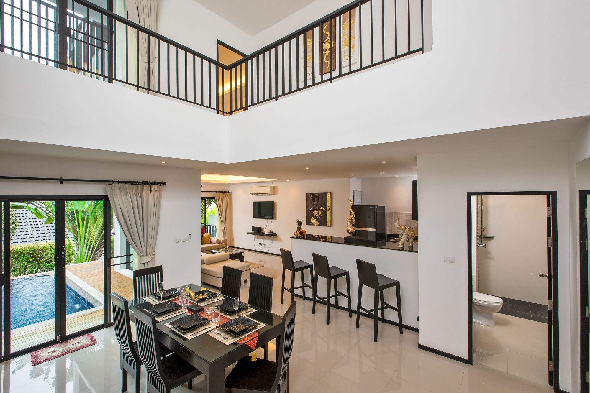 Esta casa de vacaciones se sitúa en Rawai, a poca distancia de Playa Nai Harn y de Cabo Promthep. Esta casa de vacaciones se encuentra cerca de Mirador de Kata y de Playa Ao Sane. Regálate una estancia fantástica en esta casa de vacaciones donde, además de aire acondicionado, tendrás una cocina perfectamente equipada con frigorífico grande y placa de cocina. Y, si te apetece tomar el aire, puedes salir a su patio, excelentemente amueblado, que es de uso privado. Entre los servicios de ocio, te alegrará poder acceder a multitud de canales por cable y un reproductor de DVD, además de conexión a Internet wifi gratis para mantenerte al día de tus cosas. Tendrás un teléfono, así como una caja fuerte (cabe un portátil) y un microondas. No te pierdas instalaciones recreativas como piscina al aire libre o gimnasio: ¡lo pasarás en grande! Se ofrece además conexión a Internet wifi gratis y área para parrillas. Hay un aparcamiento sin asistencia gratuito disponible.