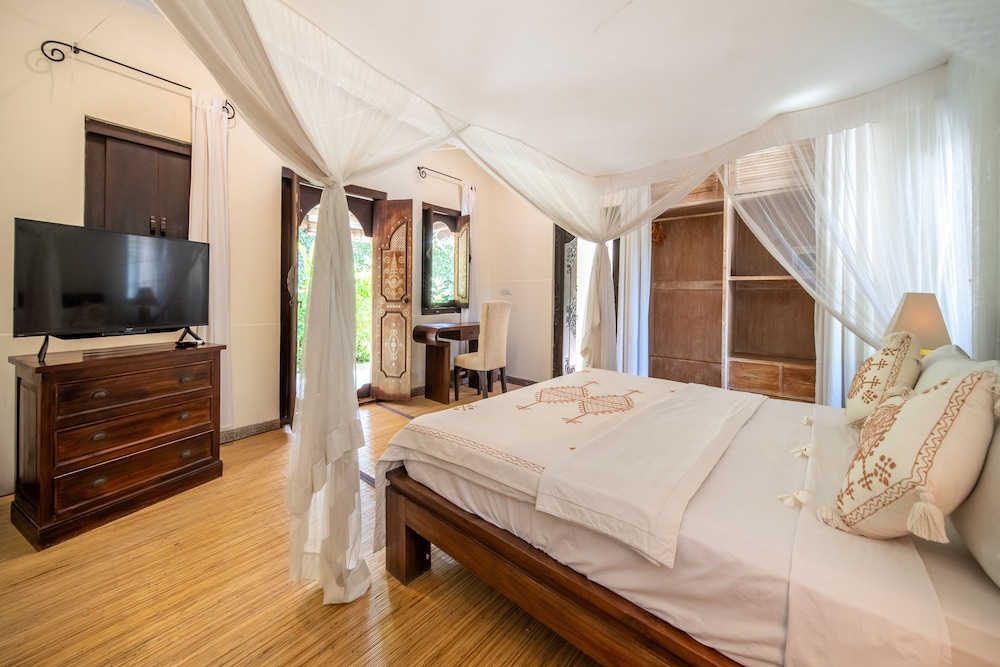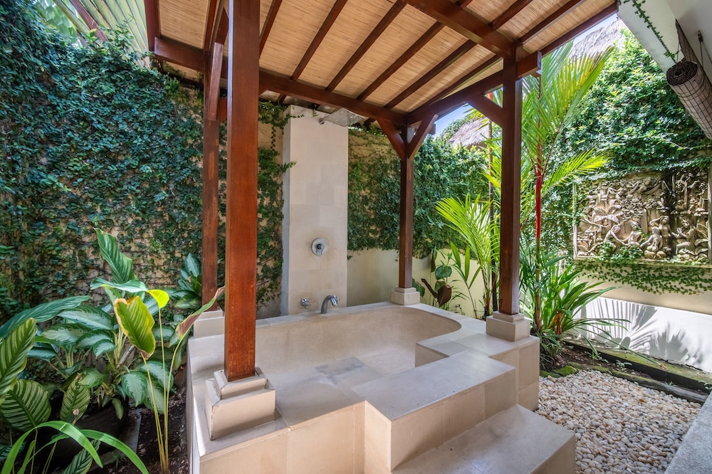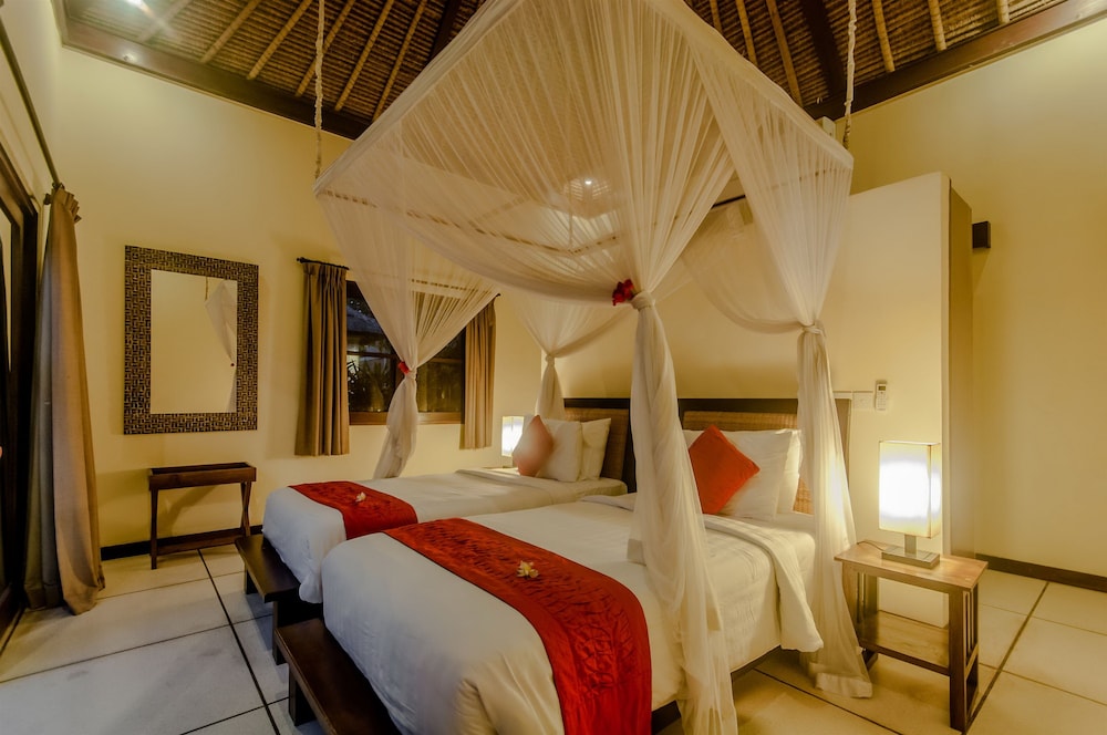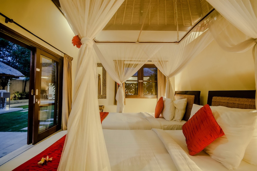 Si te alojas en Villa Gembira, en Kuta Utara (Barrio Batubelig), estarás a pocos minutos de Playa de Batu Belig y Plaza Seminyak. Esta villa se encuentra cerca de Playa Berawa y de Parque temático Finns Recreation Club. Reserva una de las 2 habitaciones climatizadas dotadas de cocina básica. La conexión a Internet wifi gratis te permite comunicarte con los tuyos, y en tus ratos libres tendrás un televisor LCD con canales por cable para entretenerte. Entre las comodidades, se incluyen caja fuerte y escritorio, además de un servicio de limpieza disponible todos los días. Aprovecha las instalaciones recreativas, que incluyen piscina al aire libre y bicicletas de alquiler. Tendrás servicio de recepción 24 horas y lavandería a tu disposición. Hay un aparcamiento sin asistencia gratuito disponible.