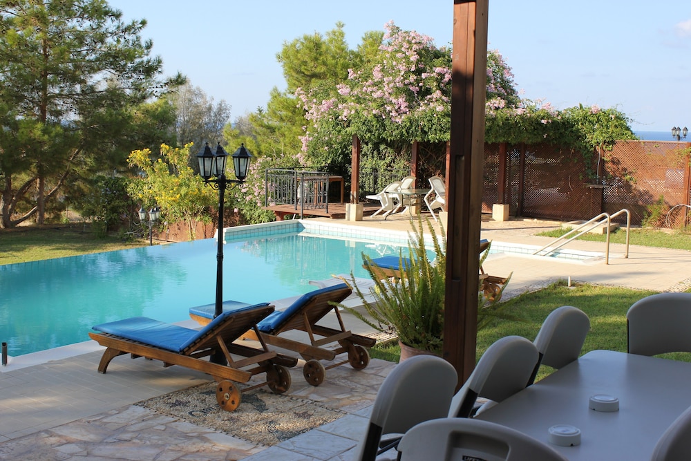 En Argaka, Villa Knossos se sitúa en los alrededores de Puerto de Latchi y de Adonis Baths Water Falls. Esta villa se encuentra a pocos kilómetros de Baños de Afrodita y de Sendero Afrodita.Habitaciones Reserva una de las 3 habitaciones climatizadas, todas equipadas con piscina privada y televisor de pantalla plana. Las habitaciones disponen de patio con mobiliario. La cocina está equipada con frigorífico, horno y placa de cocina. La televisión con canales digitales y reproductor de DVD es ideal para entretenerse, y gracias a la conexión a Internet wifi gratis no perderás el contacto con el resto del mundo.Servicios de negocios y otros Hay un aparcamiento sin asistencia gratuito disponible.