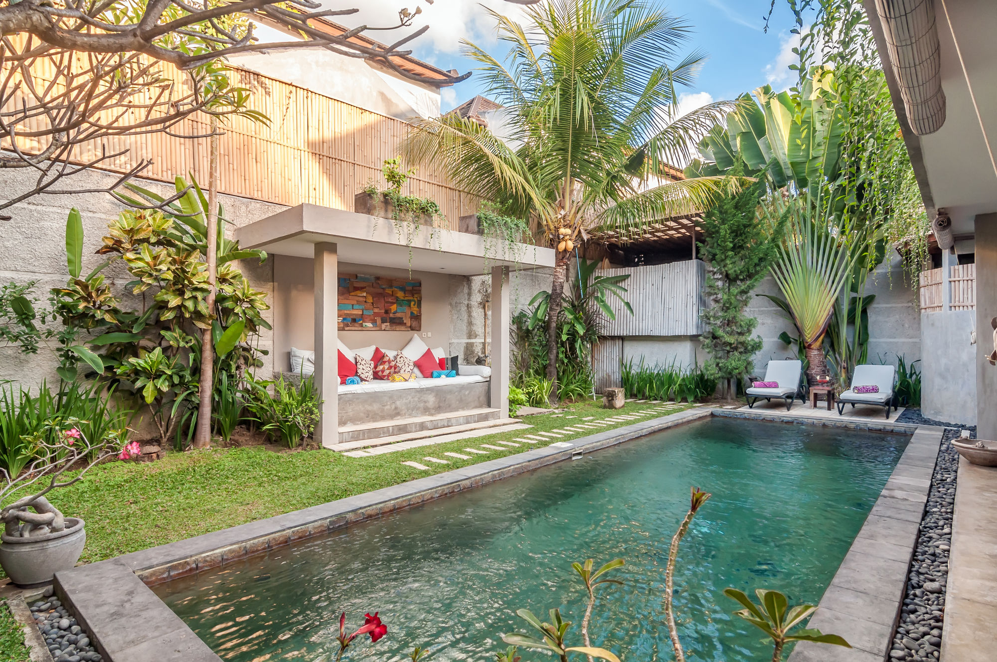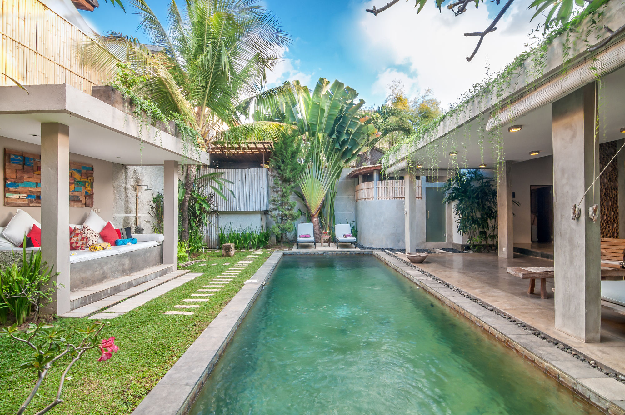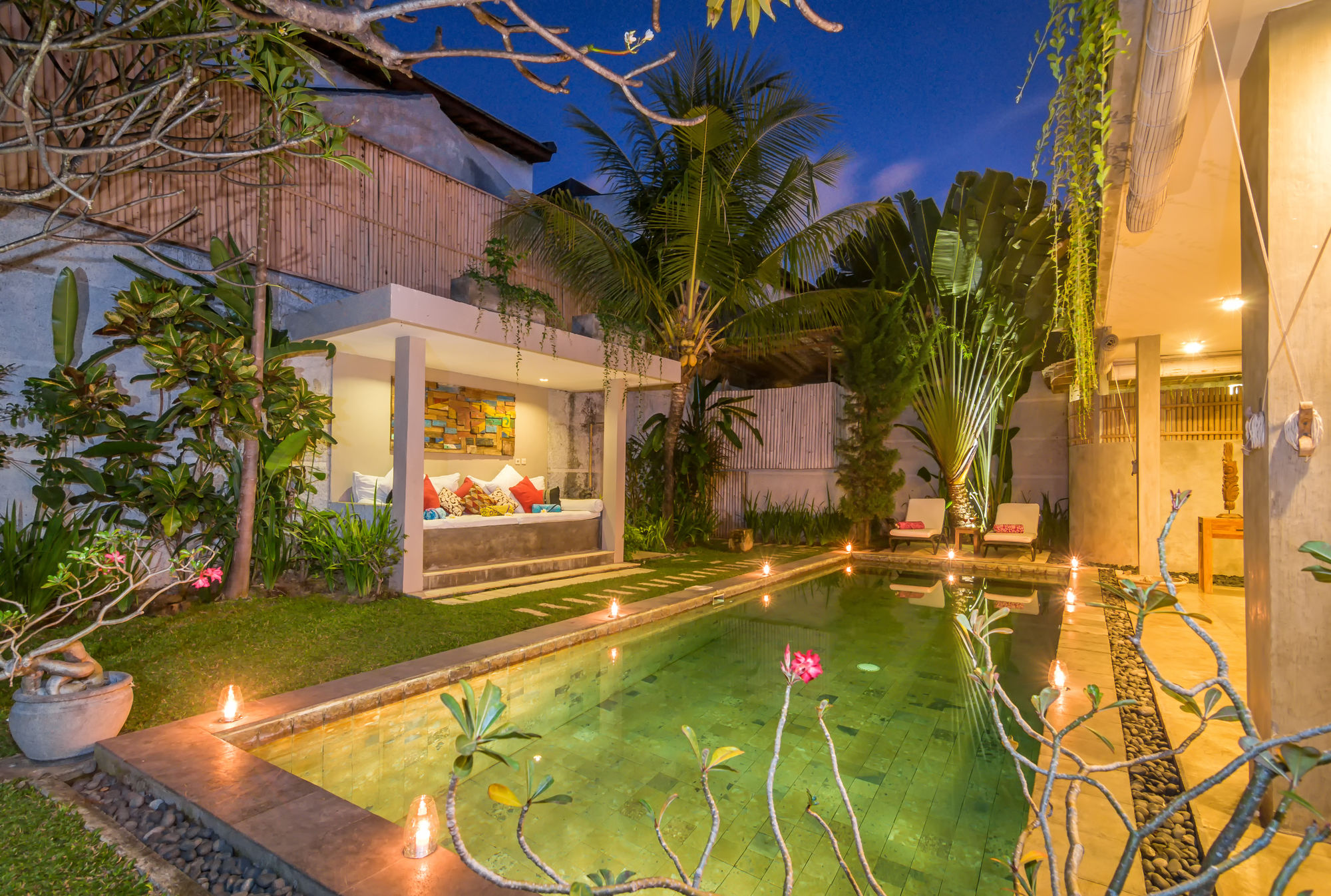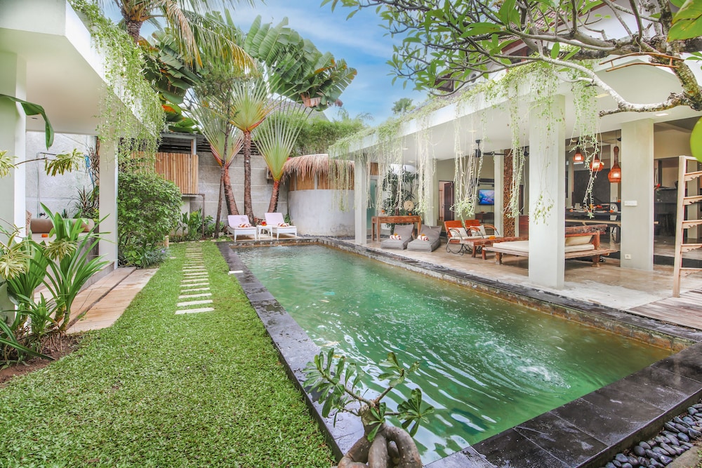 Villa Malou está en pleno corazón de Seminyak, a pocos pasos de Eat Street y Plaza Seminyak. Esta villa se encuentra cerca de Playa de Kuta y de Carrefour Plaza de Kuta.Habitaciones Reserva una de las 4 habitaciones climatizadas, todas equipadas con piscina privada y televisor LCD. La cocina está equipada con frigorífico/congelador grande, placa de cocina y microondas. La conexión a Internet wifi gratis te mantendrá en contacto con los tuyos; también podrás ver tu programa favorito en el televisor con canales por cable. Las comodidades incluyen caja fuerte y escritorio, además de un servicio de limpieza disponible todos los días.Servicios Con piscina al aire libre y muchas otras instalaciones recreativas a tu disposición, no te quedará ni un minuto libre. Tienes también una terraza y jardín donde sentarte a contemplar el paisaje. Otros servicios de esta villa incluyen conexión a Internet wifi gratis, servicio de canguro (de pago) y asistencia turística y para la compra de entradas.Para comer Se sirve un desayuno de pago.Servicios de negocios y otros Tendrás check-in rápido y caja fuerte en recepción a tu disposición. Pagando un pequeño suplemento podrás aprovechar prestaciones como servicio de transporte al aeropuerto (ida y vuelta) de pago y aparcamiento sin asistencia gratuito.