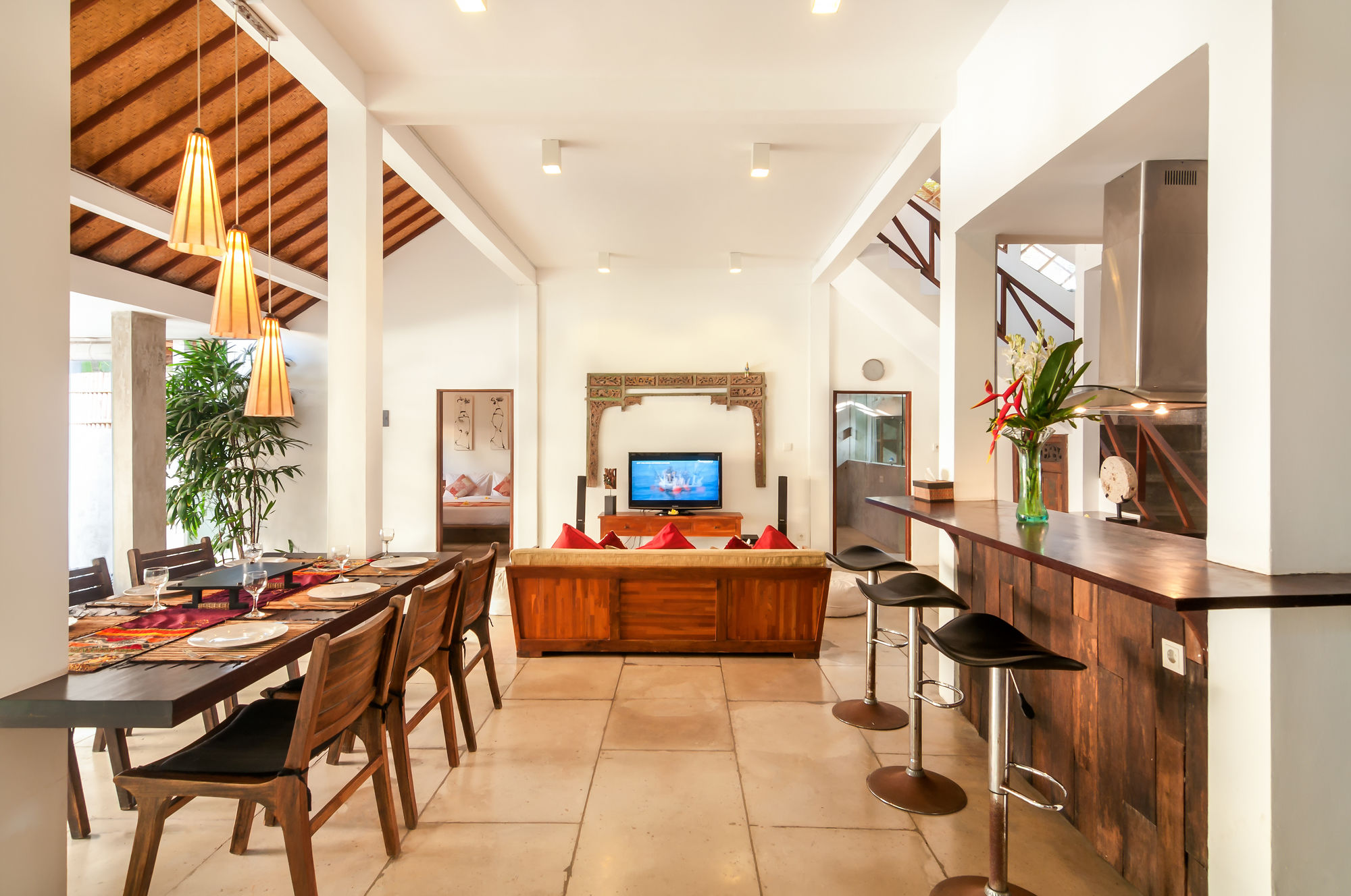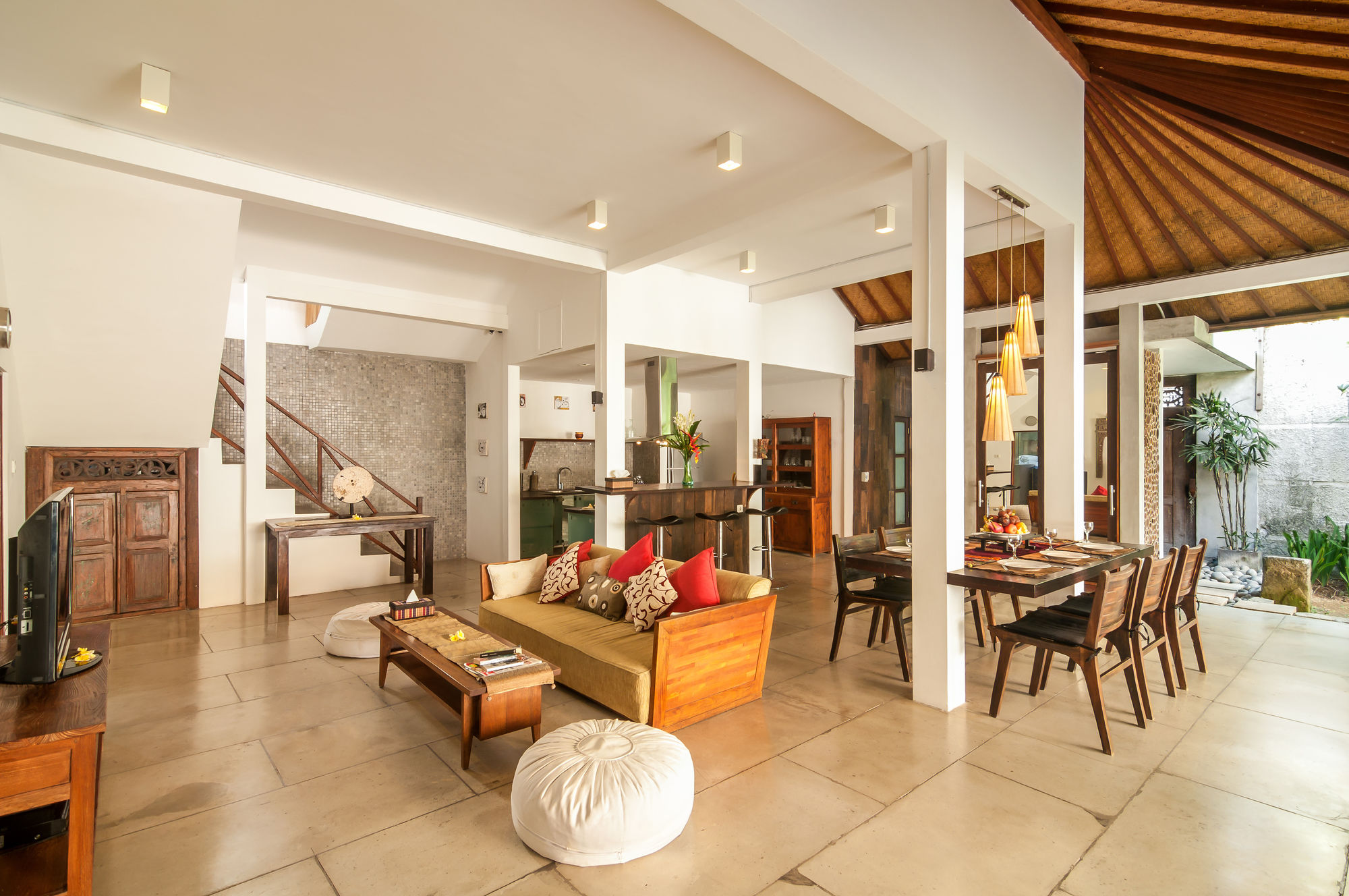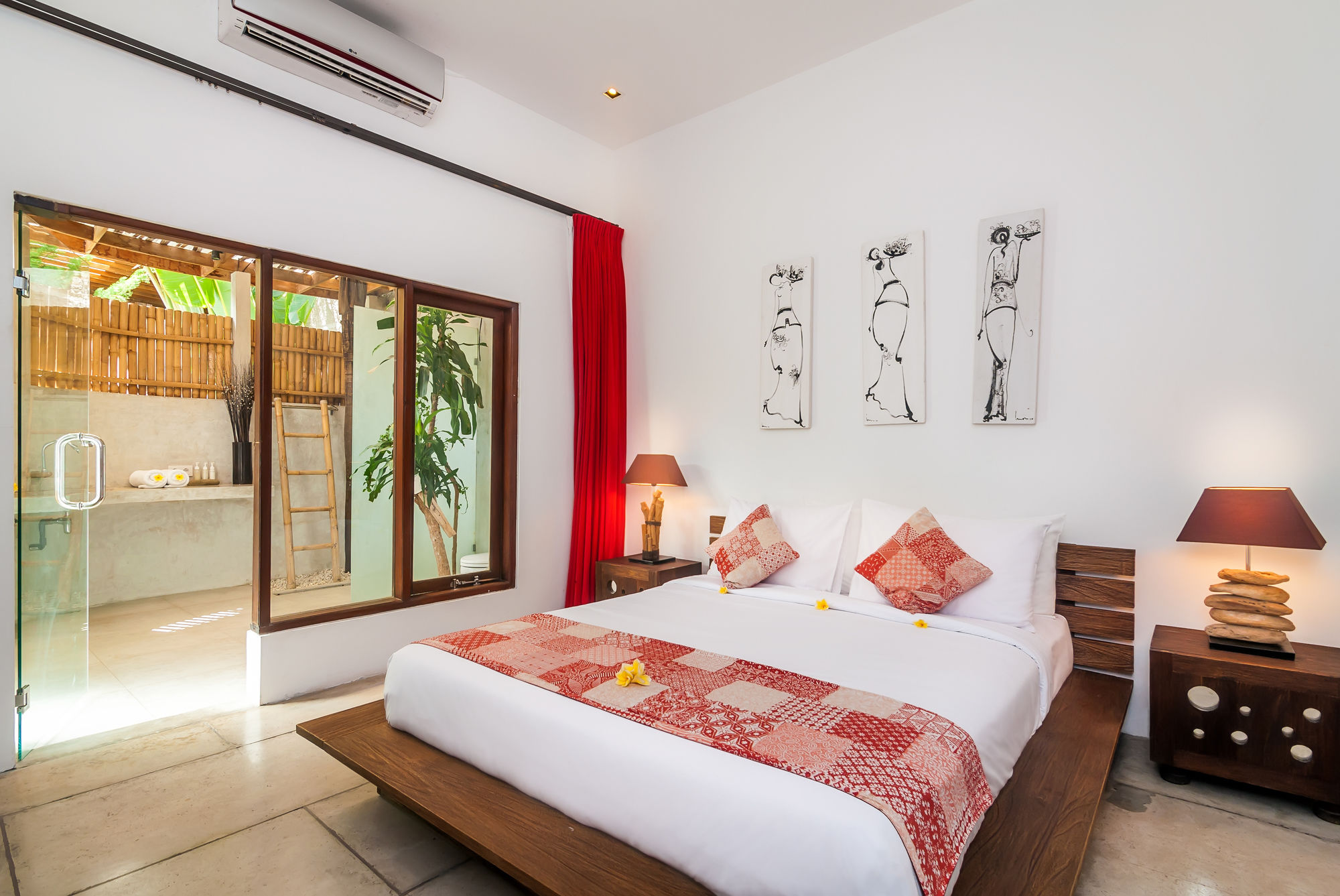 Villa Malou está en pleno corazón de Seminyak, a pocos pasos de Eat Street y Plaza Seminyak. Esta villa se encuentra cerca de Playa de Kuta y de Carrefour Plaza de Kuta.Habitaciones Reserva una de las 4 habitaciones climatizadas, todas equipadas con piscina privada y televisor LCD. La cocina está equipada con frigorífico/congelador grande, placa de cocina y microondas. La conexión a Internet wifi gratis te mantendrá en contacto con los tuyos; también podrás ver tu programa favorito en el televisor con canales por cable. Las comodidades incluyen caja fuerte y escritorio, además de un servicio de limpieza disponible todos los días.Servicios Con piscina al aire libre y muchas otras instalaciones recreativas a tu disposición, no te quedará ni un minuto libre. Tienes también una terraza y jardín donde sentarte a contemplar el paisaje. Otros servicios de esta villa incluyen conexión a Internet wifi gratis, servicio de canguro (de pago) y asistencia turística y para la compra de entradas.Para comer Se sirve un desayuno de pago.Servicios de negocios y otros Tendrás check-in rápido y caja fuerte en recepción a tu disposición. Pagando un pequeño suplemento podrás aprovechar prestaciones como servicio de transporte al aeropuerto (ida y vuelta) de pago y aparcamiento sin asistencia gratuito.