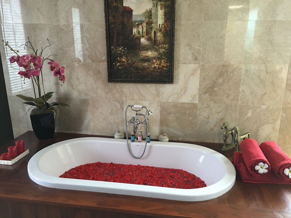 Si te alojas en Villa Pasraman Baghawan, en Jimbaran (Kuta Selatan), estarás a poca distancia de Playa Jimbaran y Tanjung Benoa. Este bed and breakfast de 4 estrellas se encuentra muy cerca de Samasta Lifestyle Village y Universidad de Udayana. Te sentirás como en tu propia casa en cualquiera de las 6 habitaciones con aire acondicionado y televisor LED. La conexión a Internet wifi gratis te mantendrá en contacto con los tuyos; también podrás ver tu programa favorito en el televisor con canales por cable. El baño privado con ducha y bañera combinadas está provisto de bañera profunda y artículos de higiene personal gratuitos. Entre las comodidades, se incluyen caja fuerte y escritorio, además de un servicio de limpieza disponible todos los días. Olvídate del estrés con los masajes, tratamientos corporales y tratamientos faciales disponibles. Encontrarás también conexión a Internet wifi gratis y servicio de celebración de bodas. Puedes disfrutar de una deliciosa comida en el restaurante Cafe Italia de este bed and breakfast, que también tiene una cafetería y servicio de habitaciones con horario limitado. Tendrás check-in exprés, check-out exprés y tintorería o lavandería a tu disposición. Hay un aparcamiento sin asistencia gratuito disponible.