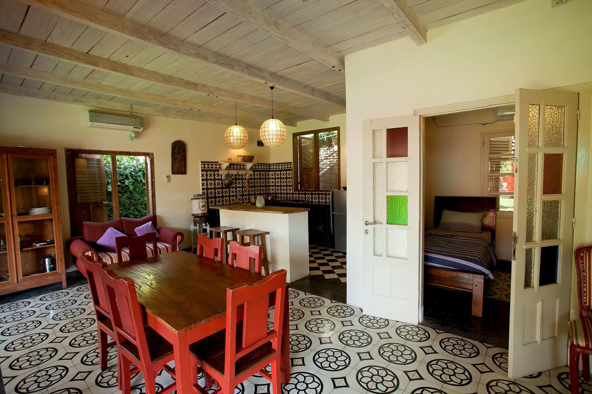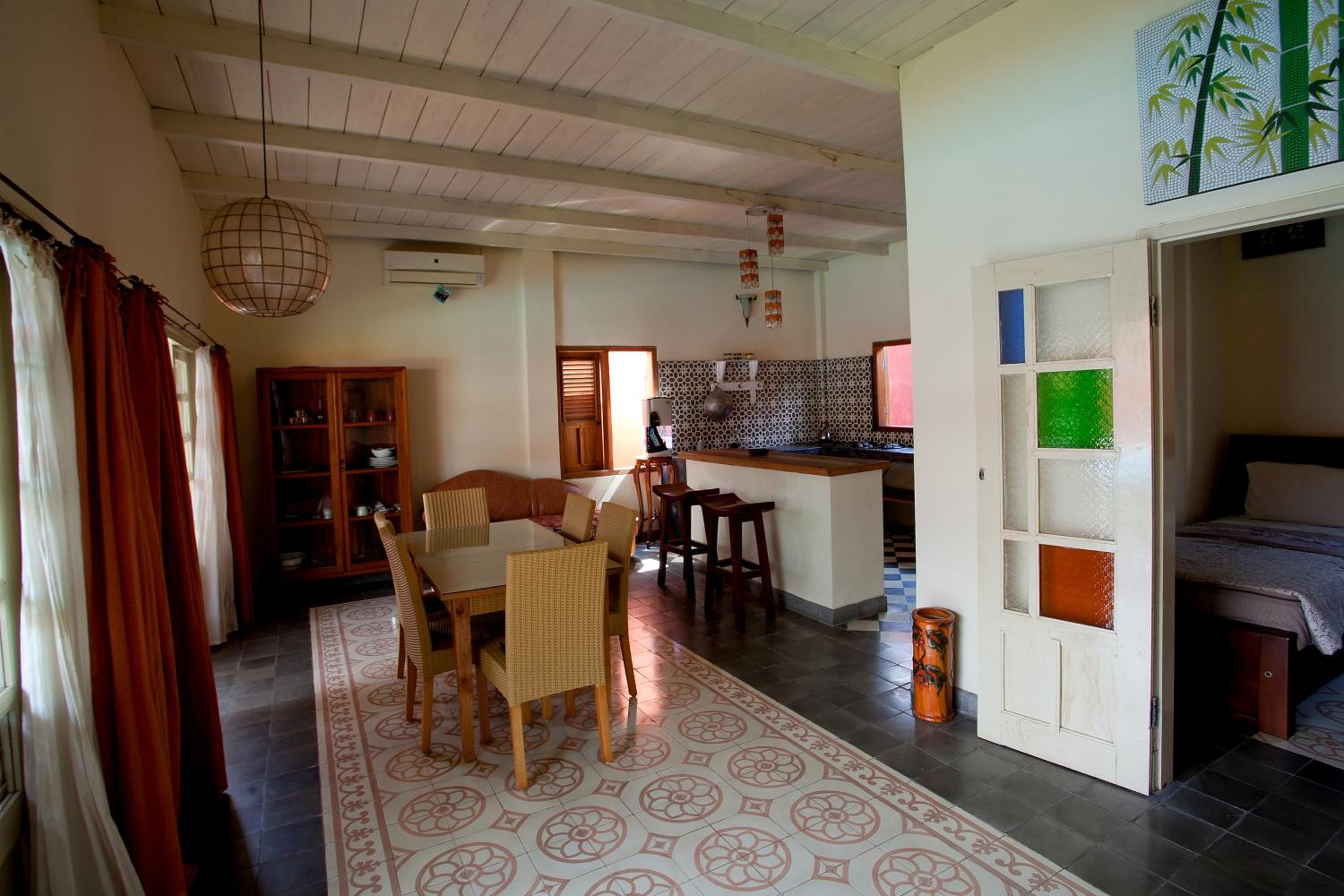 Alojándote en Villa Pondok Terra estarás en pleno corazón de Mantrijeron, a pocos pasos de Centro de artesanía Batik Plentong y cerca de Museo Sasono Hinggil. Esta villa se encuentra cerca de Galería de arte Lana y de Tamansari.Habitaciones Reserva una de las 4 habitaciones climatizadas, todas equipadas con piscina privada y televisor de pantalla plana. La cocina básica está equipada con frigorífico/congelador grande, placa de cocina y microondas. La conexión a Internet wifi gratis te mantendrá en contacto con los tuyos; también podrás ver tu programa favorito en el televisor con canales por cable. Las comodidades incluyen caja fuerte y una zona de estar separada, además de un servicio de limpieza disponible todos los días.Servicios Con bicicletas de alquiler y muchas otras instalaciones recreativas a tu disposición, no te quedará ni un minuto libre. Tienes también jardín donde sentarte a contemplar el paisaje.Para comer Todos los días se sirve un desayuno continental de pago.Servicios de negocios y otros Tendrás servicio de tintorería, atención multilingüe y depósito de equipaje a tu disposición. Se ofrece un servicio de transporte desde el aeropuerto hasta el hotel gratuito a petición.