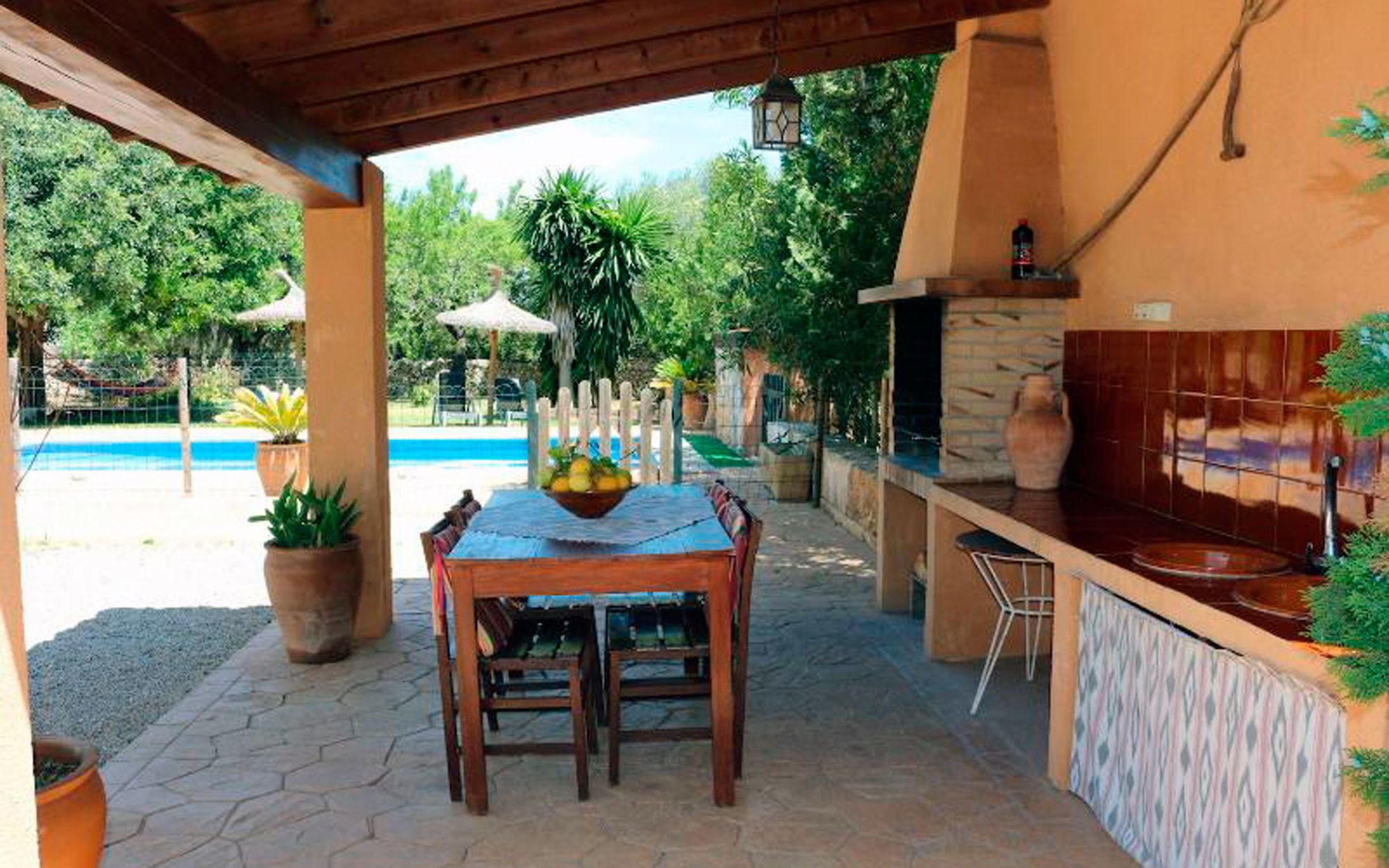 Villa Rafalino está en Inca, en las inmediaciones de Iglesia de Santo Domingo y de Museo Etnológico de Muro. Esta villa de 4 estrellas se encuentra a pocos kilómetros de Convento de los Mínimos y Galería de arte Can Gili. Disfruta de una estancia fabulosa en una de las habitaciones con aire acondicionado y chimenea. La cocina está equipada con frigorífico/congelador grande, horno y microondas. La conexión a Internet wifi gratis te mantendrá en contacto con los tuyos; también podrás ver tu programa favorito en el televisor con canales por satélite. Entre las comodidades, se incluyen escritorio y cafetera y tetera. Con piscina al aire libre y muchas otras instalaciones recreativas a tu disposición, no te quedará ni un minuto libre. Tienes también una terraza y jardín donde sentarte a contemplar el paisaje. Encontrarás también asistencia turística y para la compra de entradas y área para parrillas. Se ofrece servicio de transporte al aeropuerto (ida y vuelta) de pago (disponible las 24 horas).