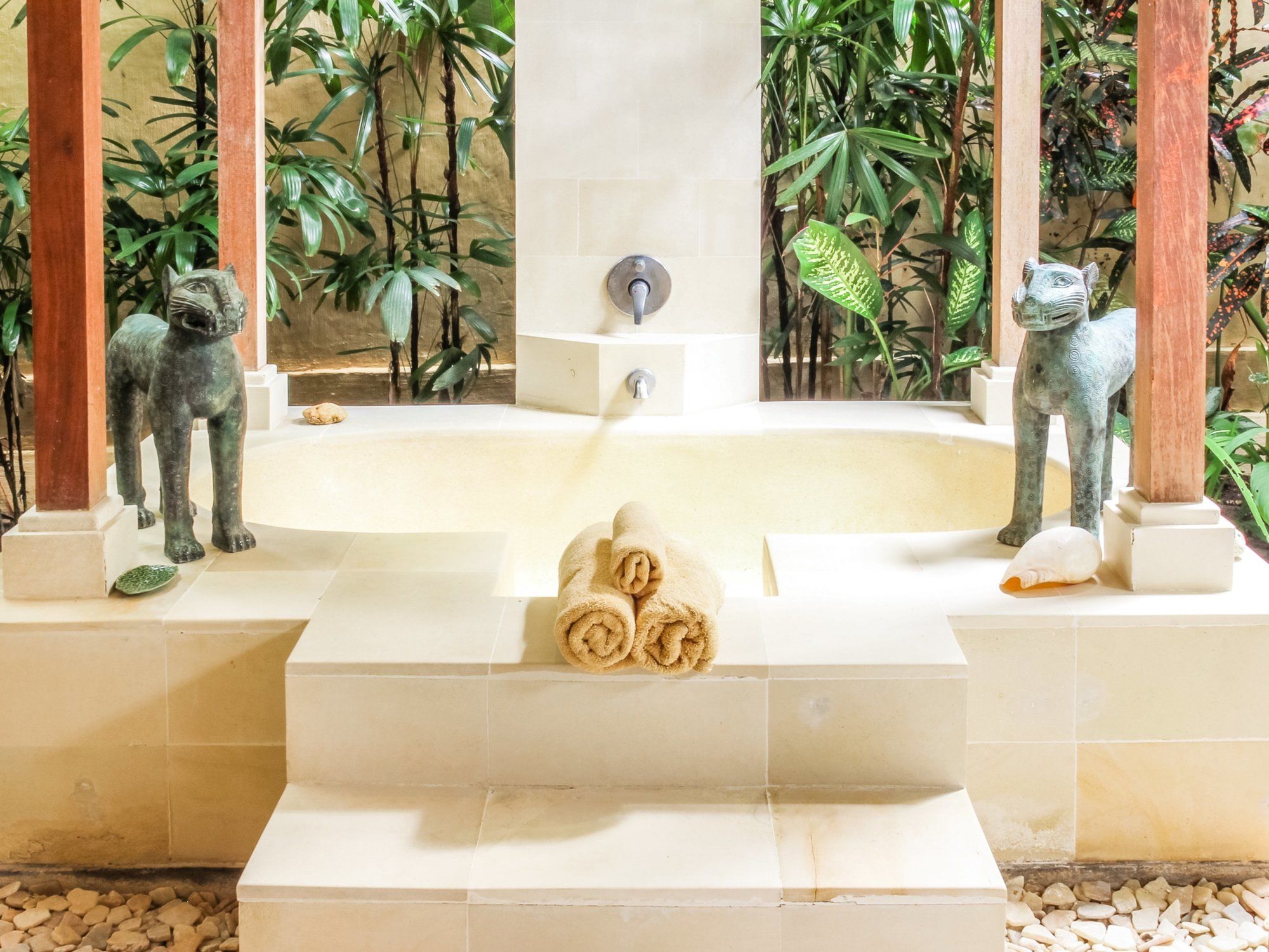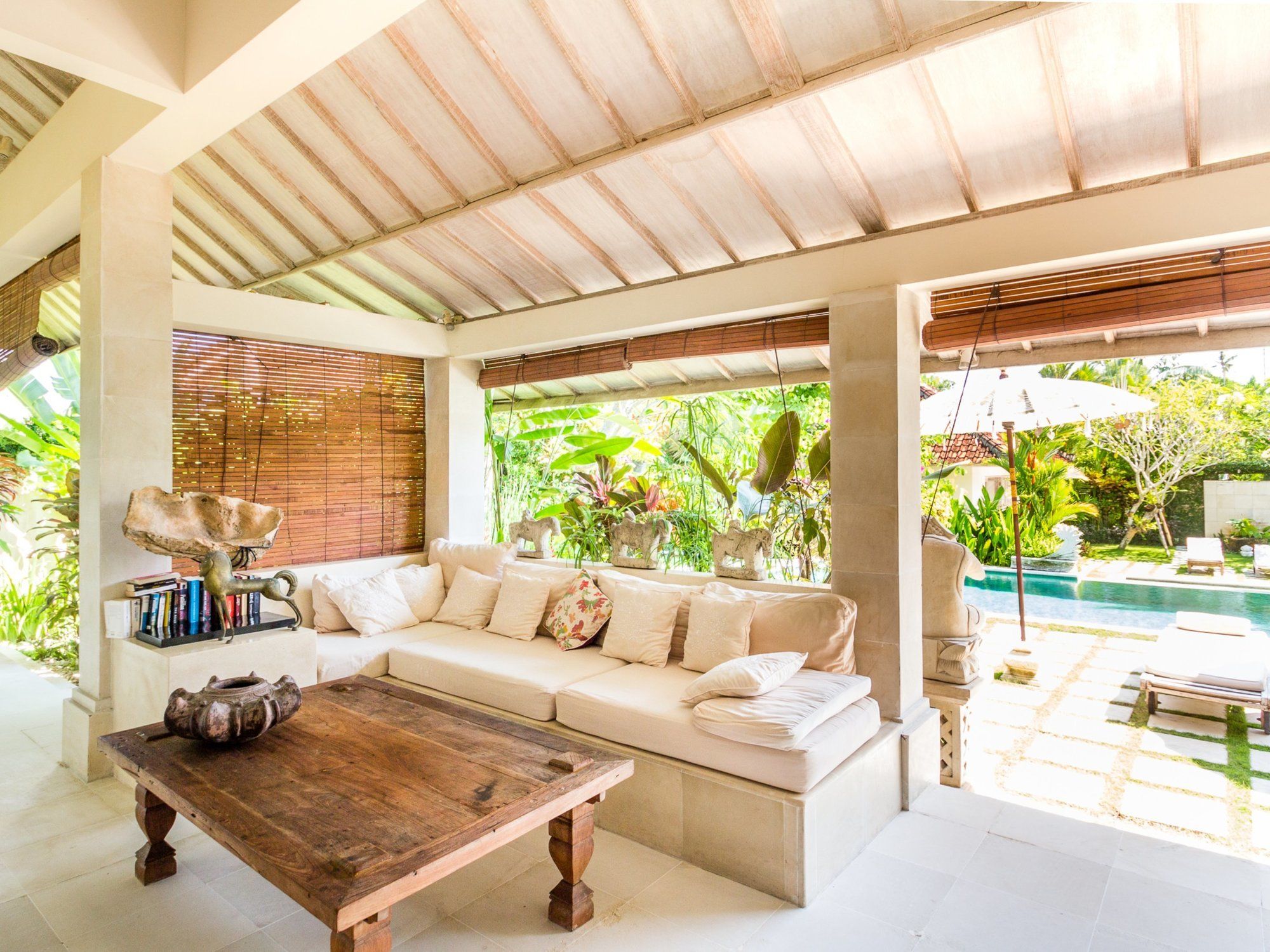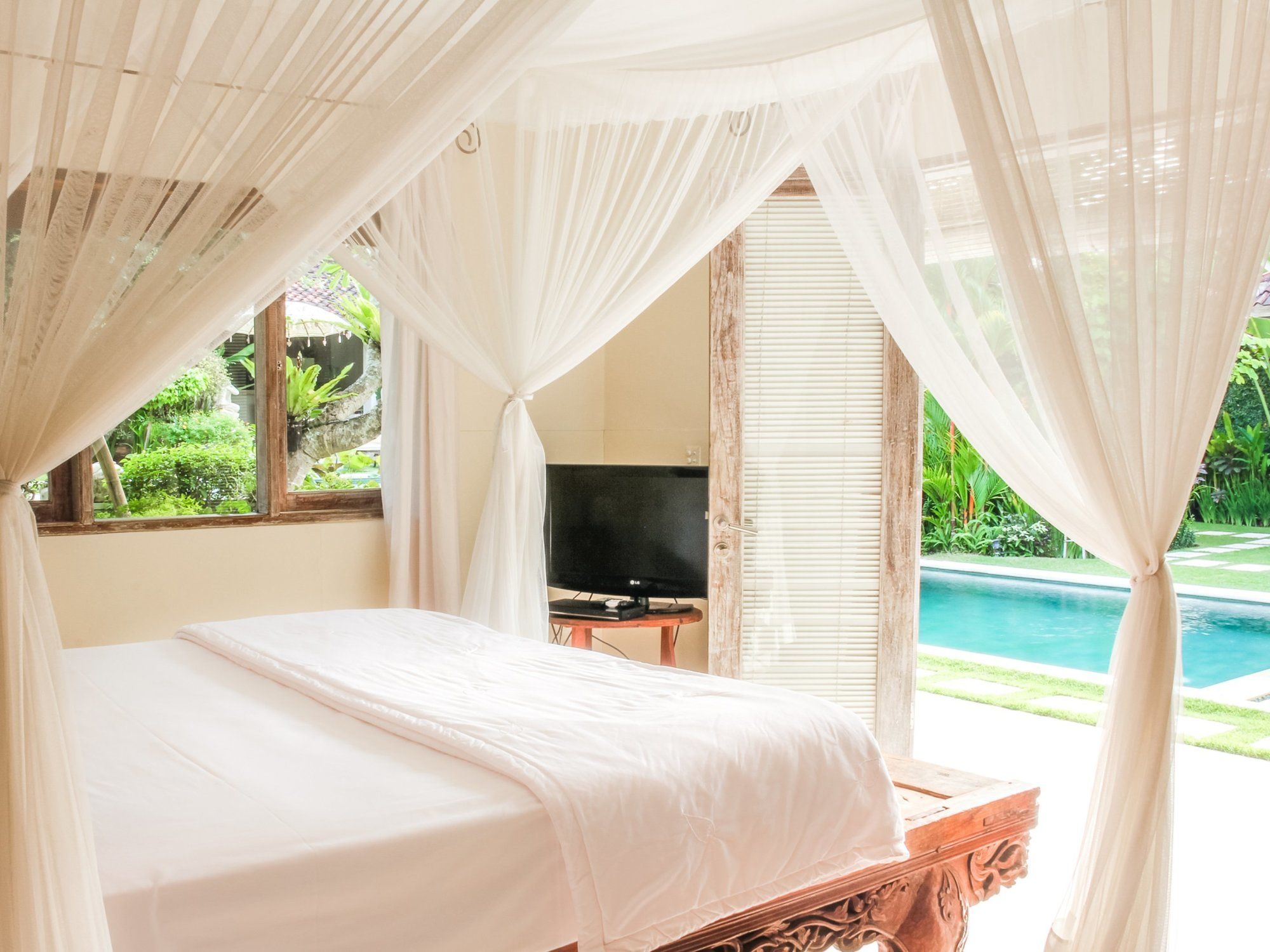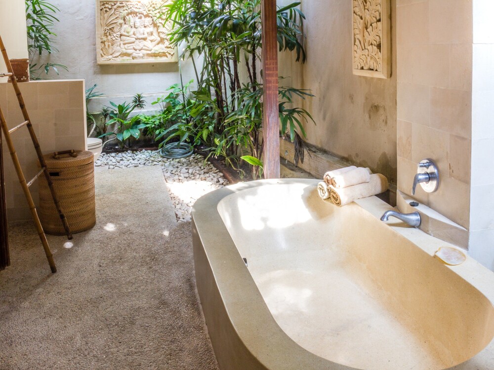 Si te alojas en Villa Senang, en Kuta Utara (Barrio Batubelig), estarás a pocos minutos de Playa de Batu Belig y Plaza Seminyak. Esta villa de 4 estrellas se encuentra muy cerca de Playa Berawa y Parque temático Finns Recreation Club. Reserva una de las 4 habitaciones climatizadas, todas dotadas de cocina básica con frigorífico y microondas. La conexión a Internet wifi gratis te mantendrá en contacto con los tuyos; también podrás ver tu programa favorito en el televisor con canales por cable. Entre las comodidades, se incluyen caja fuerte y escritorio, además de un servicio de limpieza disponible todos los días. Con piscina al aire libre y muchas otras instalaciones recreativas a tu disposición, no te quedará ni un minuto libre. Tienes también jardín donde sentarte a contemplar el paisaje. Se sirve un desayuno gratuito. Tendrás lavandería y caja fuerte en recepción a tu disposición. Hay un aparcamiento sin asistencia gratuito disponible.