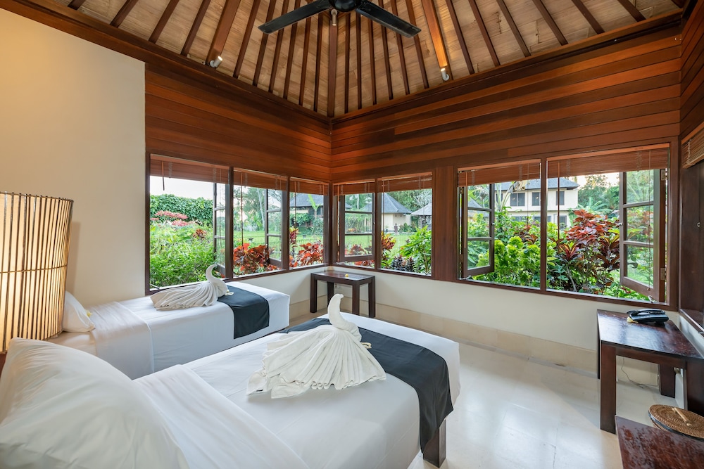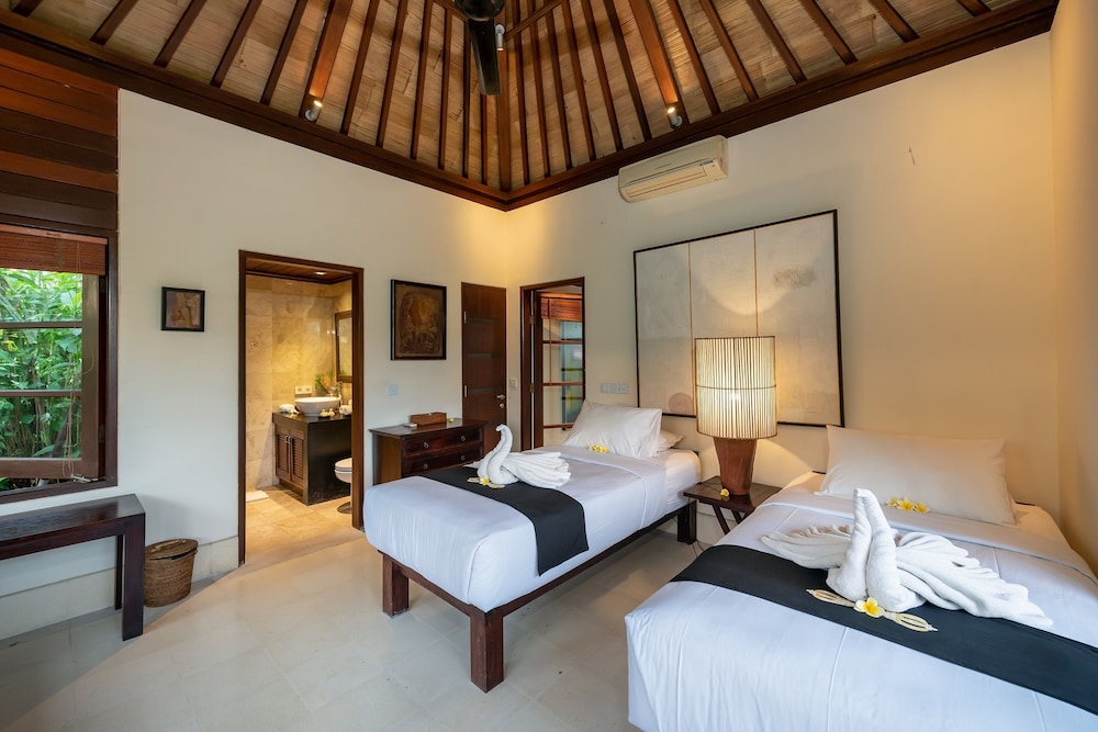 En Ubud, Villa Vajra te permite llegar cómodamente a Batik Workshop y a Nyoman Ada Gallery. Esta villa de 4 estrellas se encuentra muy cerca de Mandala Wisata Wanara Wana y Petulu.Habitaciones Te sentirás como en tu propia casa en una de las 3 habitaciones con aire acondicionado y televisor LCD. Las habitaciones disponen de balcón. Mantén el contacto con los tuyos gracias a la conexión a Internet wifi gratis. Las comodidades incluyen caja fuerte y escritorio, además de un servicio de limpieza disponible todos los días.Servicios Aprovecha las instalaciones recreativas, que incluyen piscina al aire libre y gimnasio abierto las 24 horas. Otros servicios de esta villa incluyen conexión a Internet wifi gratis, asistencia turística y para la compra de entradas y área para parrillas. Llegarás a las principales atracciones de la zona en un abrir y cerrar de ojos gracias al servicio de transporte gratuito.Para comer Aprovecha el servicio de habitaciones con horario limitado de esta villa.Servicios de negocios y otros Tendrás servicio de tintorería y depósito de equipaje a tu disposición. Se ofrece servicio de transporte al aeropuerto (ida y vuelta) gratuito (disponible las 24 horas).