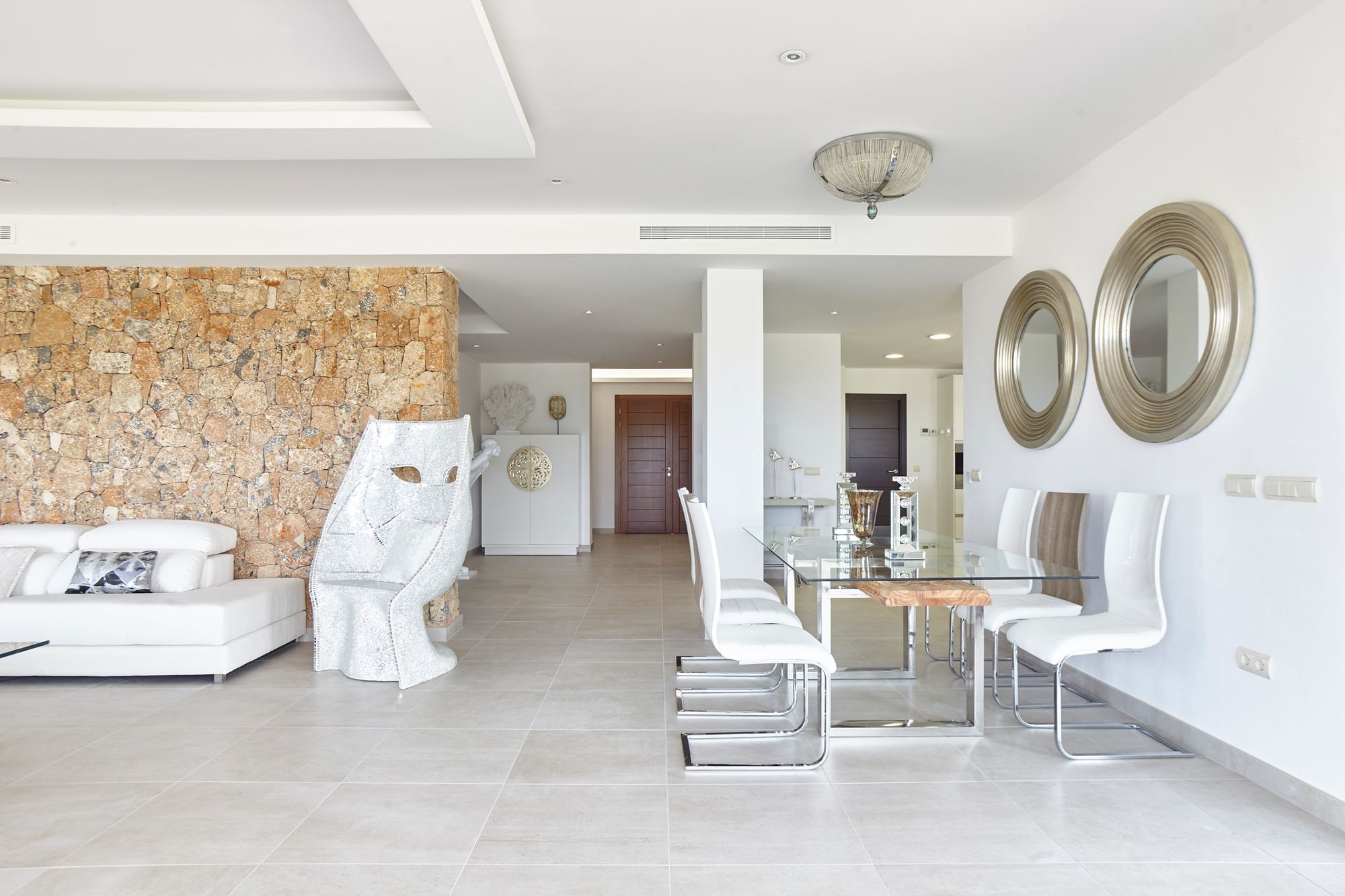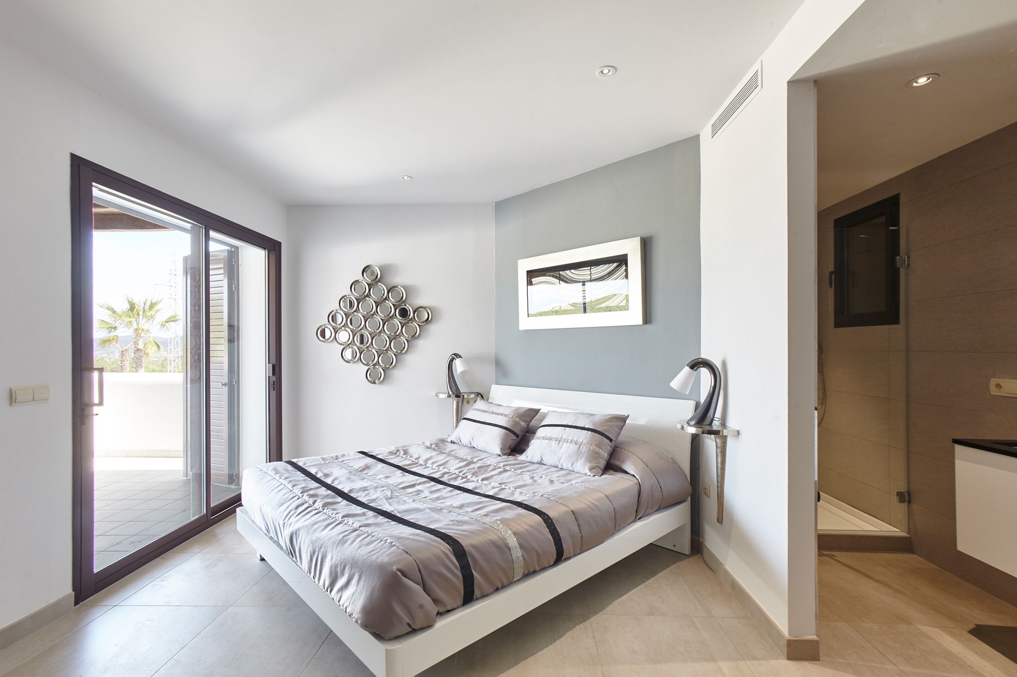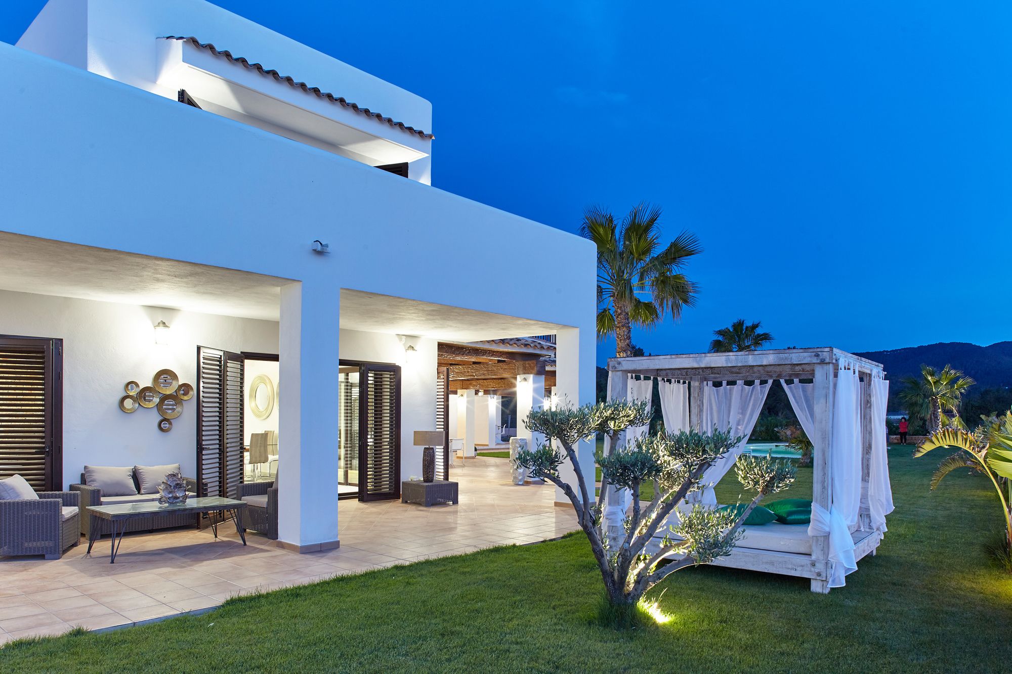 Villa White Duke de Sant Antoni de Portmany está junto al mar y a menos de diez minutos en coche de Parque de bolas zorb Air Zone Ibiza y Playa de S'Arenal. Además, esta villa de 4 estrellas se encuentra a 15 km de Castillo de Ibiza y a 20,7 km de Islote de Es Vedra. En las 5 habitaciones climatizadas, equipadas con chimenea y piscina privada, te espera una estancia inolvidable. Las habitaciones disponen de balcón o patio. La cocina está equipada con frigorífico/congelador grande, horno y placa de cocina. La conexión a Internet wifi gratis te permite comunicarte con los tuyos, y en tus ratos libres tendrás un televisor de pantalla plana con canales por cable para entretenerte. El baño privado está provisto de bañera profunda y artículos de higiene personal gratuitos. Con piscina al aire libre y muchas otras instalaciones recreativas a tu disposición, no te quedará ni un minuto libre. Tienes también una terraza y jardín donde sentarte a contemplar el paisaje. En esta villa de estilo mediterráneo encontrarás también conexión a Internet wifi gratis, servicio de canguro (de pago) y asistencia turística y para la compra de entradas. Tendrás depósito de equipaje y caja fuerte en recepción a tu disposición. Hay un aparcamiento sin asistencia gratuito disponible.
