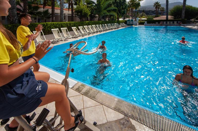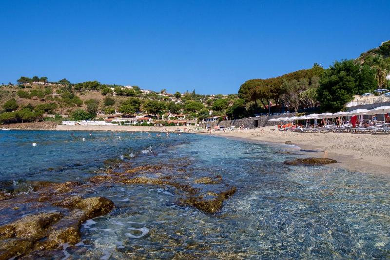 Este hotel de estilo mediterráneo, decorado en tonos blancos, azules y verdes, es perfecto para parejas. Cuenta con dos piscinas: una grande cerca de la playa y otra más pequeña e íntima para relajarse. La playa virgen presume de fina arena blanca y aguas cristalinas. Los huéspedes pueden disfrutar de un elegante restaurante con impresionantes vistas a la playa, un bar céntrico, dos piscinas frente al mar, una pista de tenis, un campo multiusos y una terraza bañada por el sol con tumbonas y sombrillas. También hay Wi-Fi y aparcamiento disponibles. Un 'Miniclub' infantil (con horario establecido) ofrece una zona de juegos dedicada. El bar frente a la playa, junto al restaurante, está listo para atenderte y hacer que tus días especiales sean aún más agradables.