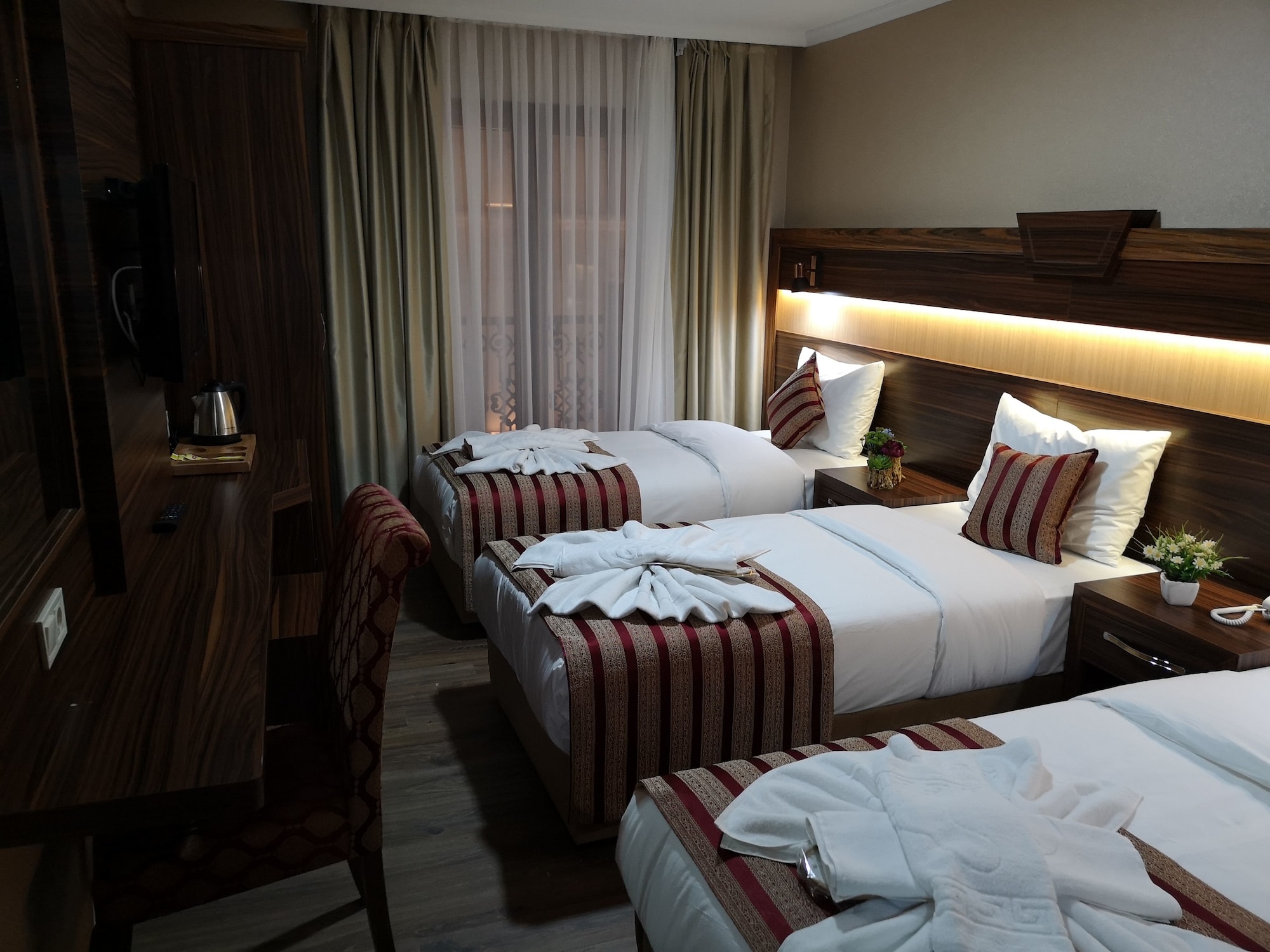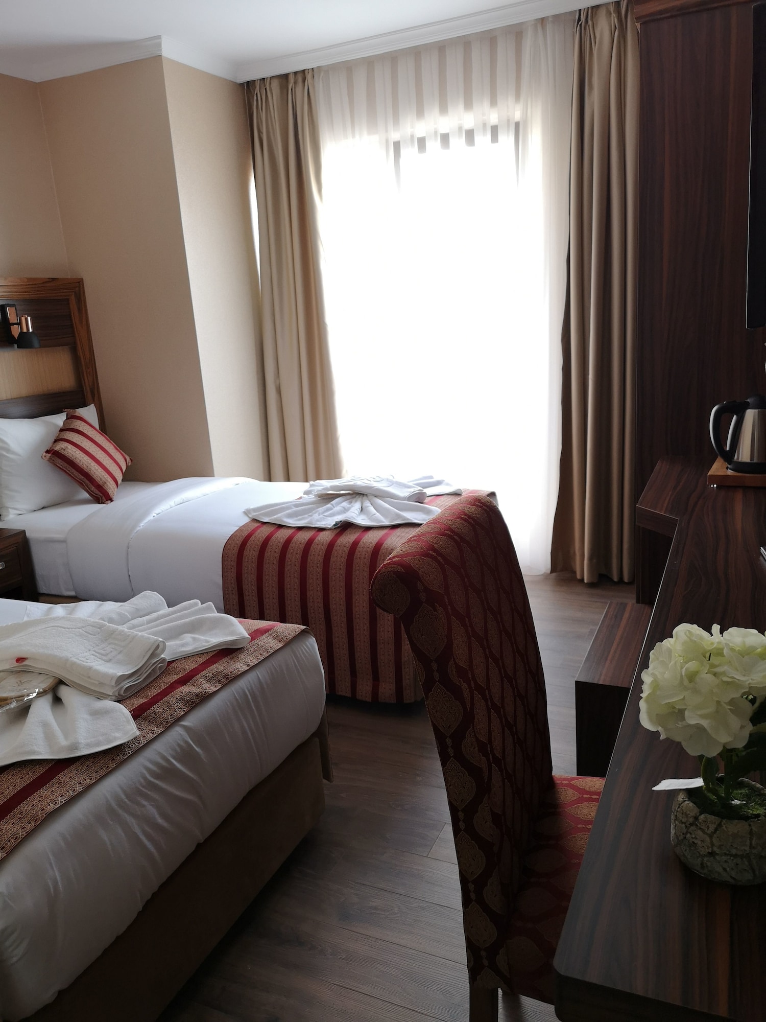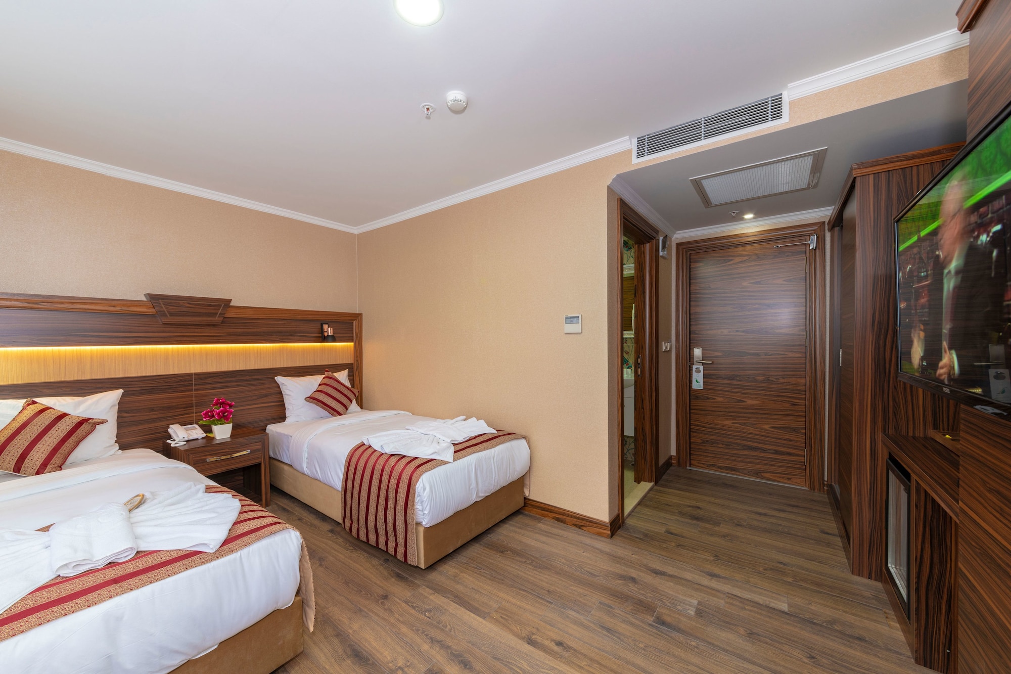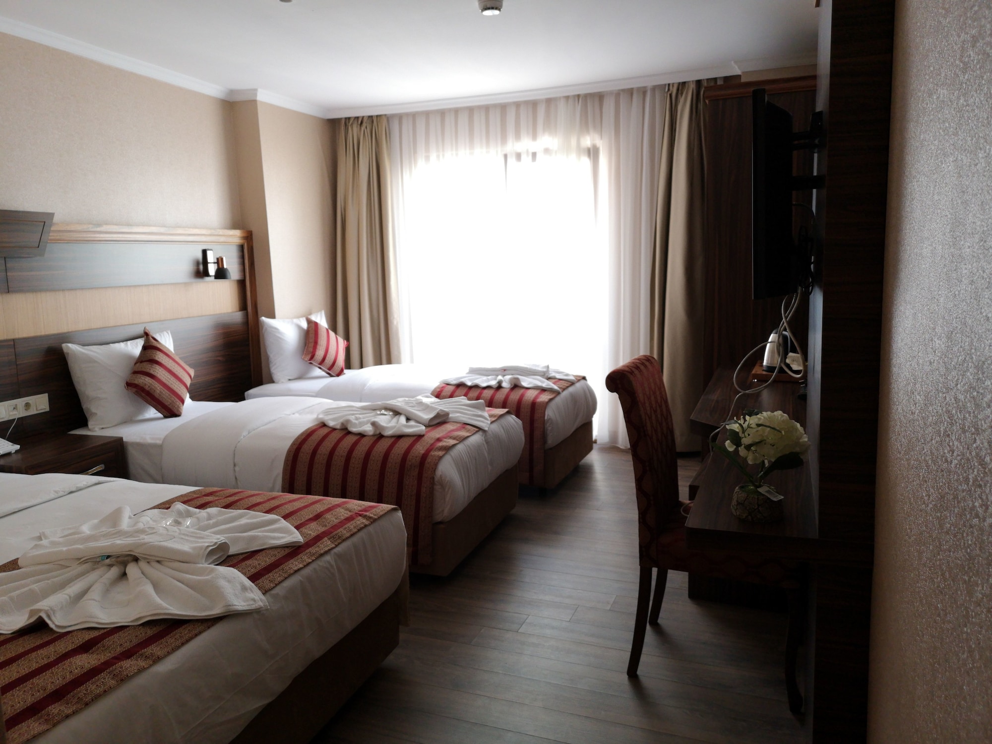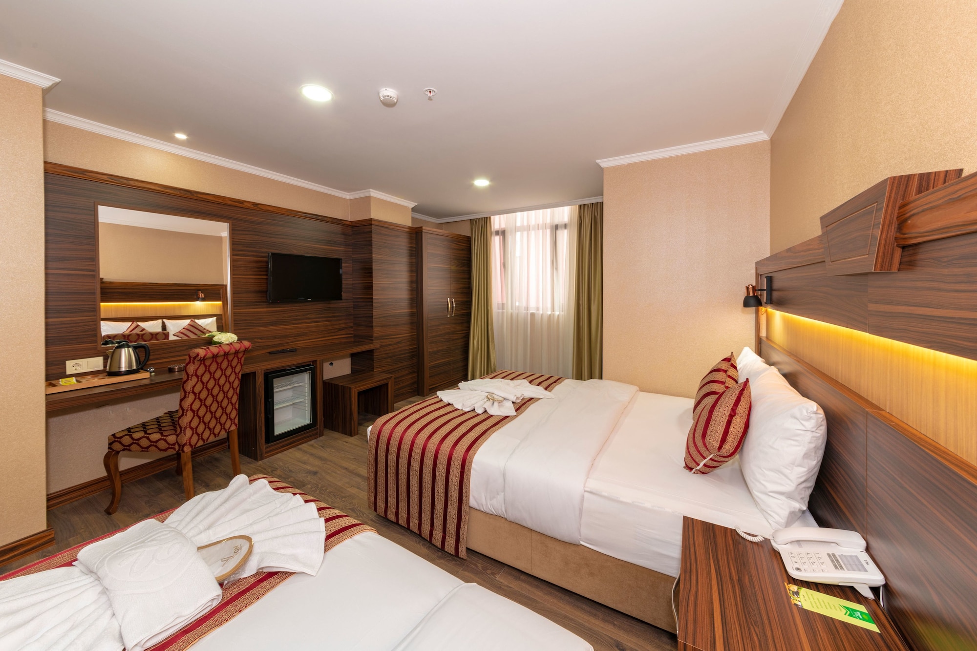 Si te alojas en Vision Deluxe Hotel, en Estambul (Centro de Estambul), estarás a pocos minutos de Mezquita de los Tulipanes y Gran Bazar. Este hotel se encuentra cerca de Centro comercial Historia Fatih y de Universidad de Estambul. Te sentirás como en tu propia casa en cualquiera de las 40 habitaciones con frigorífico y televisor LCD. La conexión a Internet wifi gratis te mantendrá en contacto con los tuyos; también podrás ver tu programa favorito en el televisor con canales por satélite. El baño privado con ducha está provisto de artículos de higiene personal gratuitos y secadora de cabello. Entre las comodidades, se incluyen caja fuerte (cabe un portátil) y servicio de descubierta, además de un servicio de limpieza disponible todos los días. Aprovecha las instalaciones recreativas, que incluyen bañera de hidromasaje y sauna. Prueba una deliciosa cena en el restaurante de este hotel. Si no te apetece salir, también tienes a tu disposición un servicio de habitaciones con horario limitado. Apaga la sed con tu bebida favorita en el bar o lounge. Se sirve un desayuno bufé gratuito todos los días de 7:30 a 10:30. Se ofrece servicio de transporte al aeropuerto (ida y vuelta) de pago (disponible las 24 horas).
