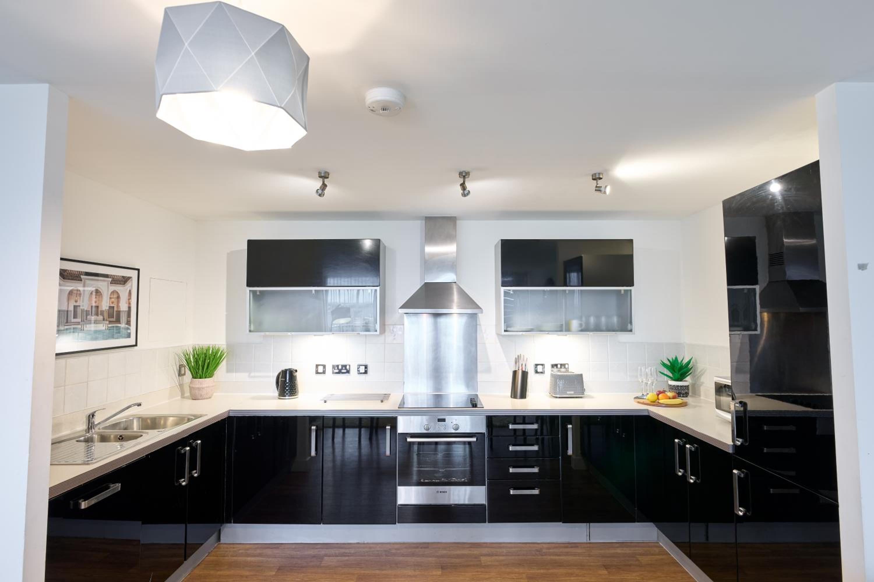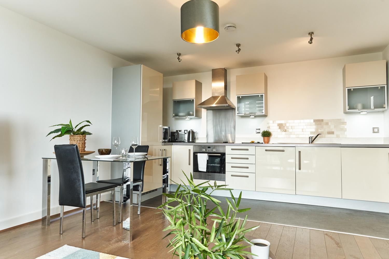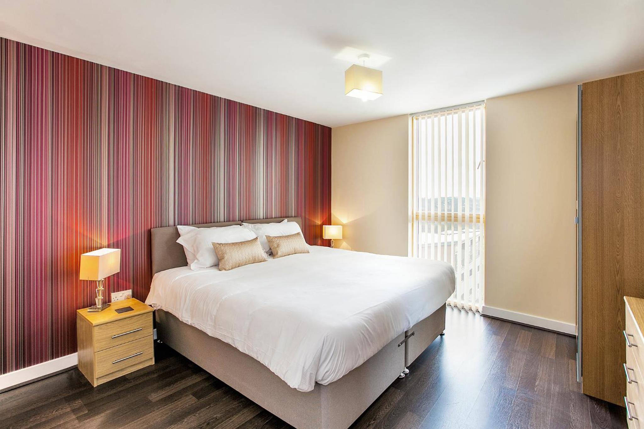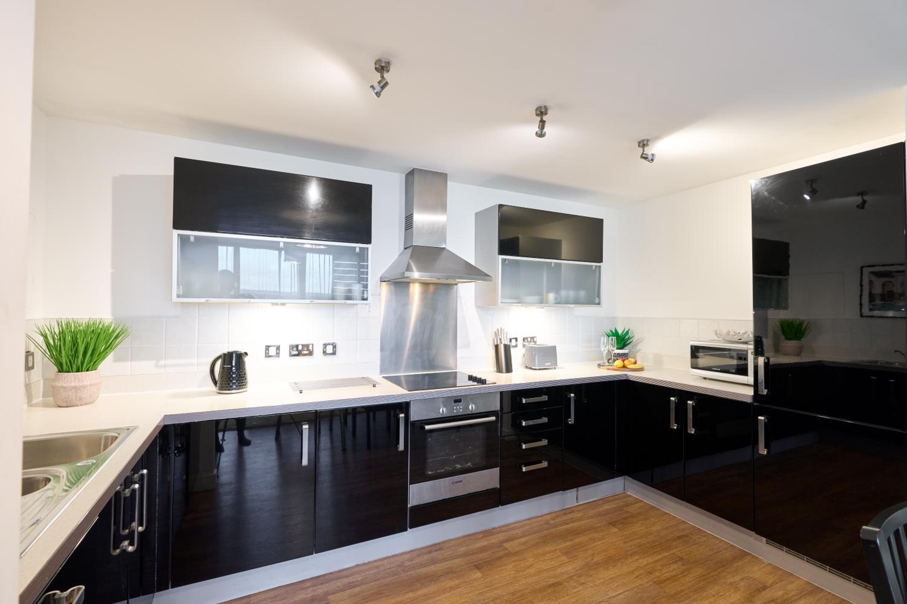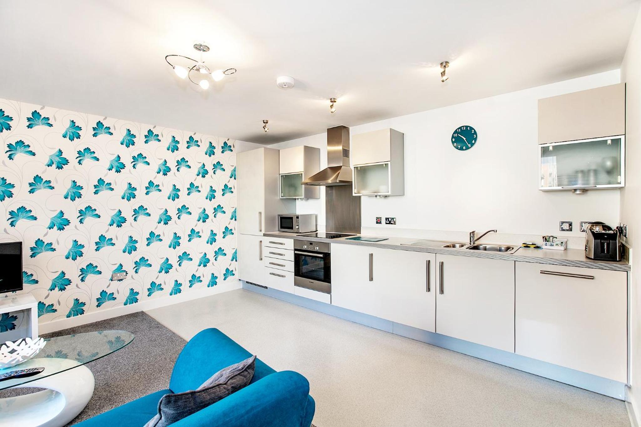 The Vizion is located in Milton Keynes, featuring a peaceful and refreshing rooftop water gardens and superb quality throughout. Each spacious 1, 2 and 3 bedroom apartment has been designed, decorated and furnished to chic designer standards. Guests can relax with a soothing drink on your own private balcony, and admire the view of the city or Vizion’s glorious sky-high water gardens. Vizion is located in just the right place for guests to benefit from everything that’s good about Milton Keynes. MK train station is within realistic walking distance (although buses and taxis are readily available) and a short walk in the other direction takes guests to the famous mile-long indoor shopping mall. The rooms are equipped with modern amenities such as cable/satellite tv, cots on request, hairdryer, television and Wi-Fi. If guests want to cook in, kitchens are equipped with full sized, top quality appliances and there is a huge Sainsbury’s superstore next door. At Vizion guests truly are spoilt for choice for dining out, and here they have what many consider to be MK’s finest dining-out choices of all - at The Hub, just across the road.