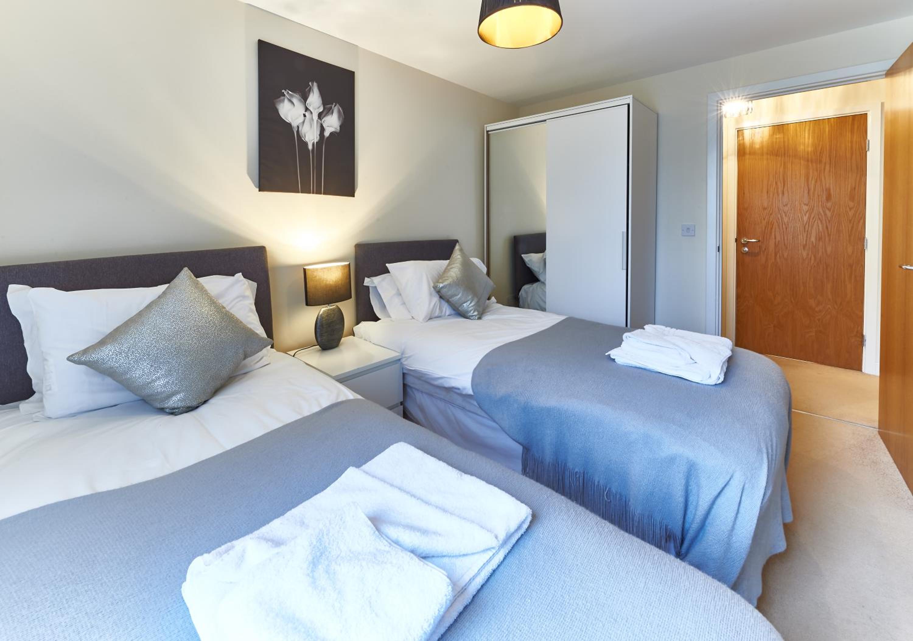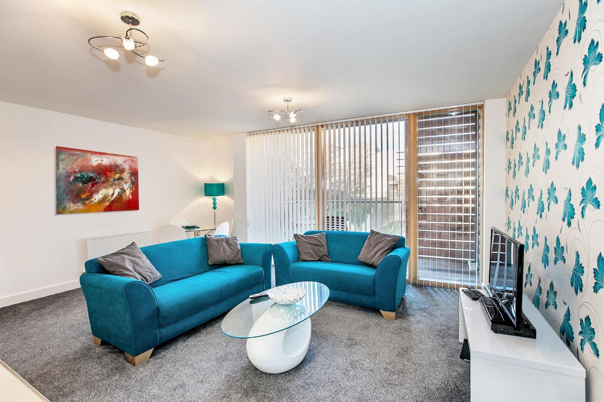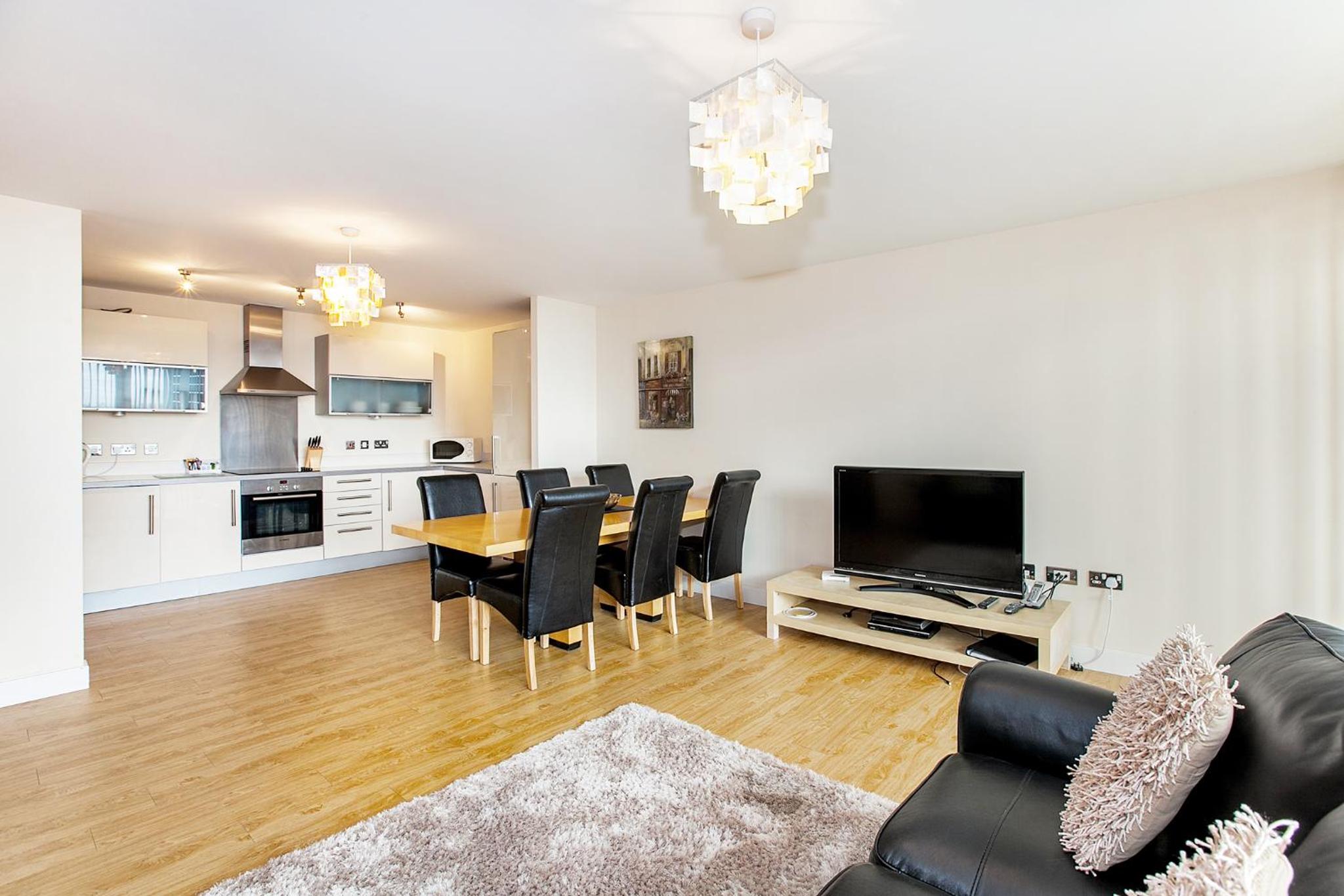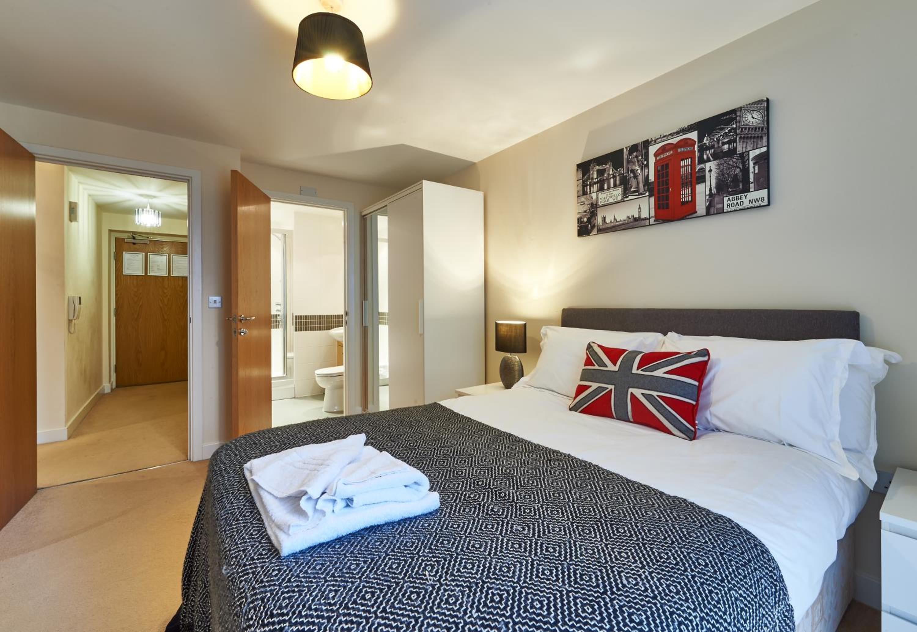 The Vizion is located in Milton Keynes, featuring a peaceful and refreshing rooftop water gardens and superb quality throughout. Each spacious 1, 2 and 3 bedroom apartment has been designed, decorated and furnished to chic designer standards. Guests can relax with a soothing drink on your own private balcony, and admire the view of the city or Vizion’s glorious sky-high water gardens. Vizion is located in just the right place for guests to benefit from everything that’s good about Milton Keynes. MK train station is within realistic walking distance (although buses and taxis are readily available) and a short walk in the other direction takes guests to the famous mile-long indoor shopping mall. The rooms are equipped with modern amenities such as cable/satellite tv, cots on request, hairdryer, television and Wi-Fi. If guests want to cook in, kitchens are equipped with full sized, top quality appliances and there is a huge Sainsbury’s superstore next door. At Vizion guests truly are spoilt for choice for dining out, and here they have what many consider to be MK’s finest dining-out choices of all - at The Hub, just across the road.