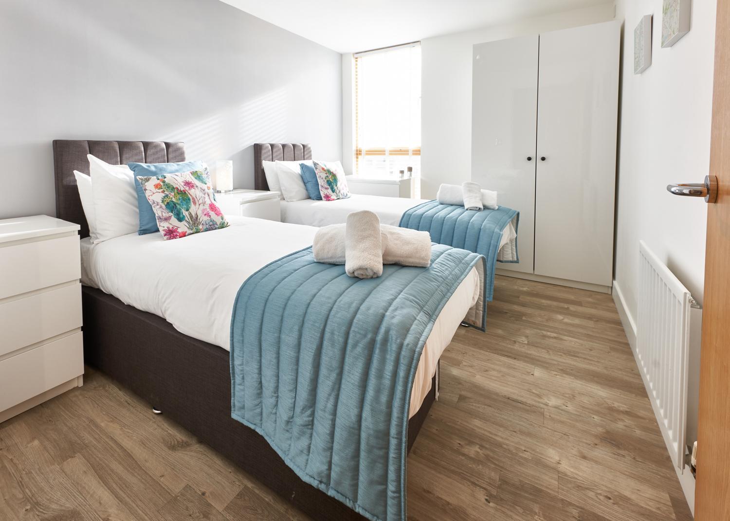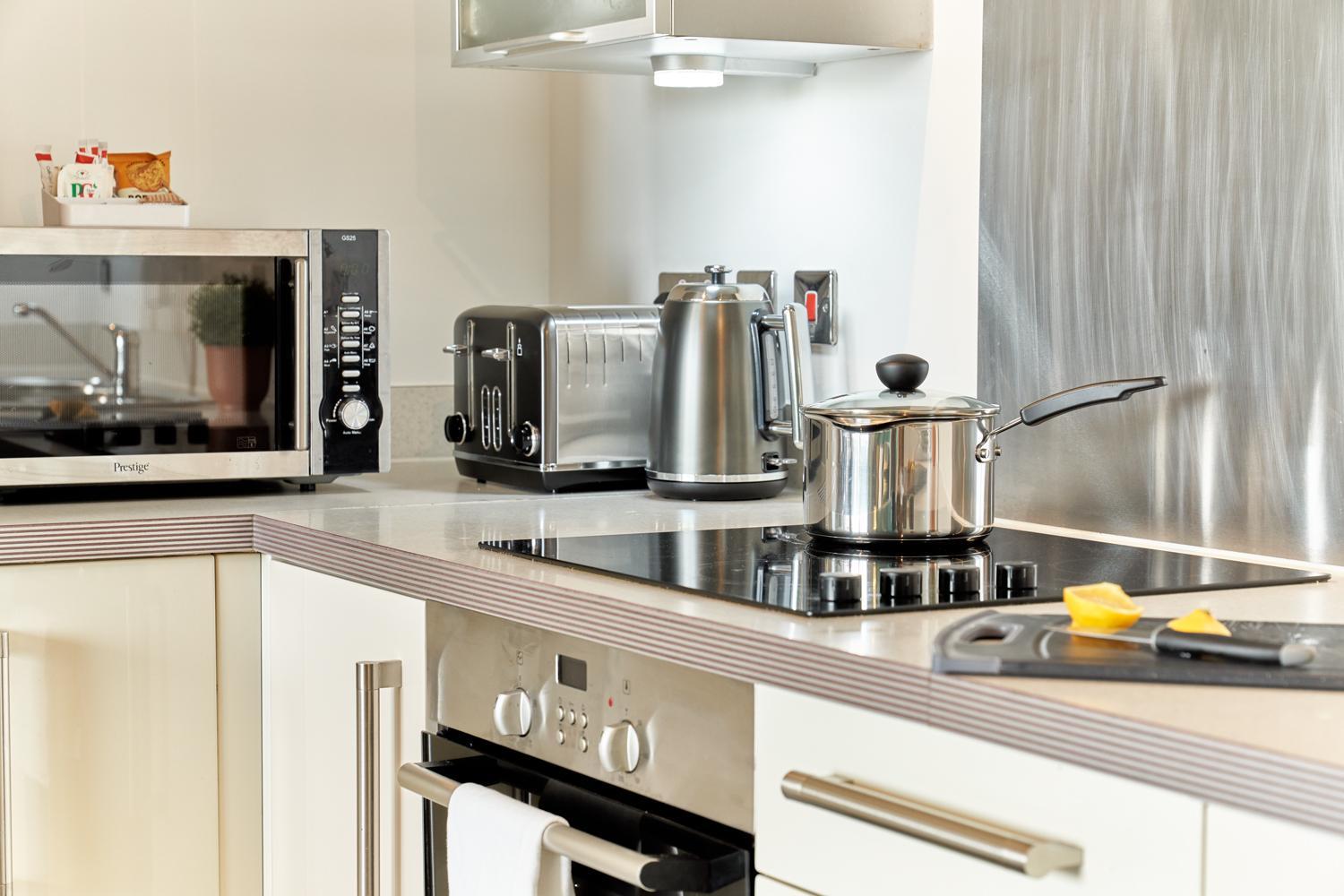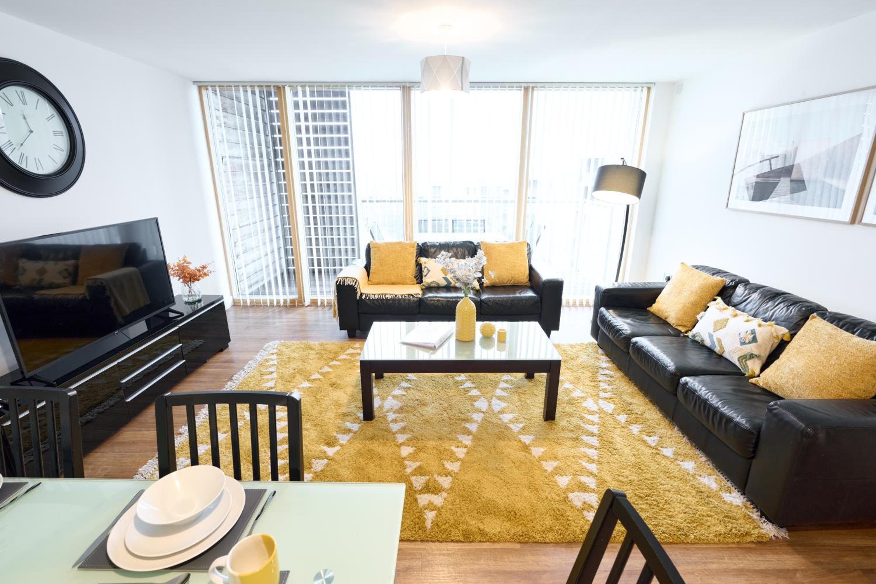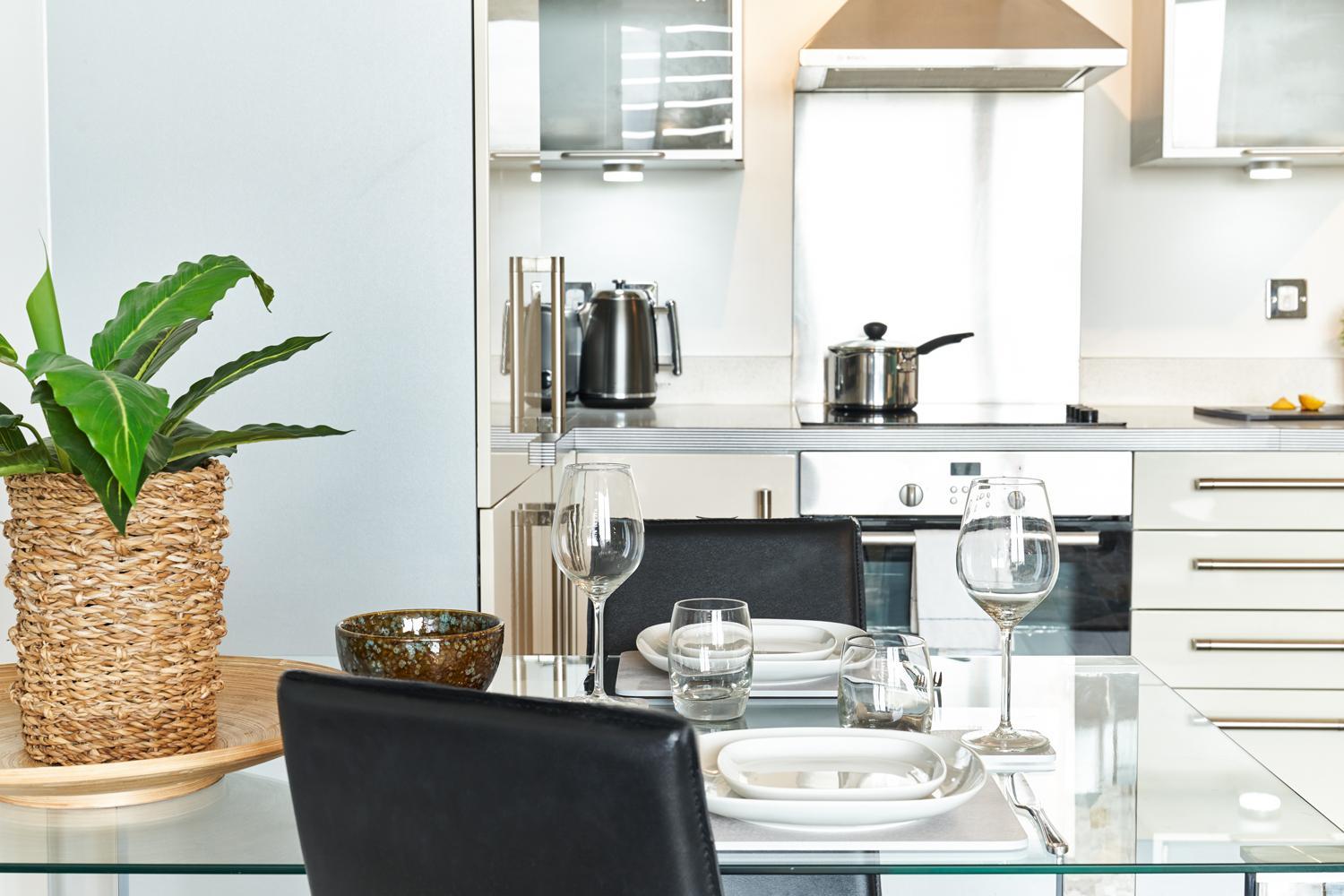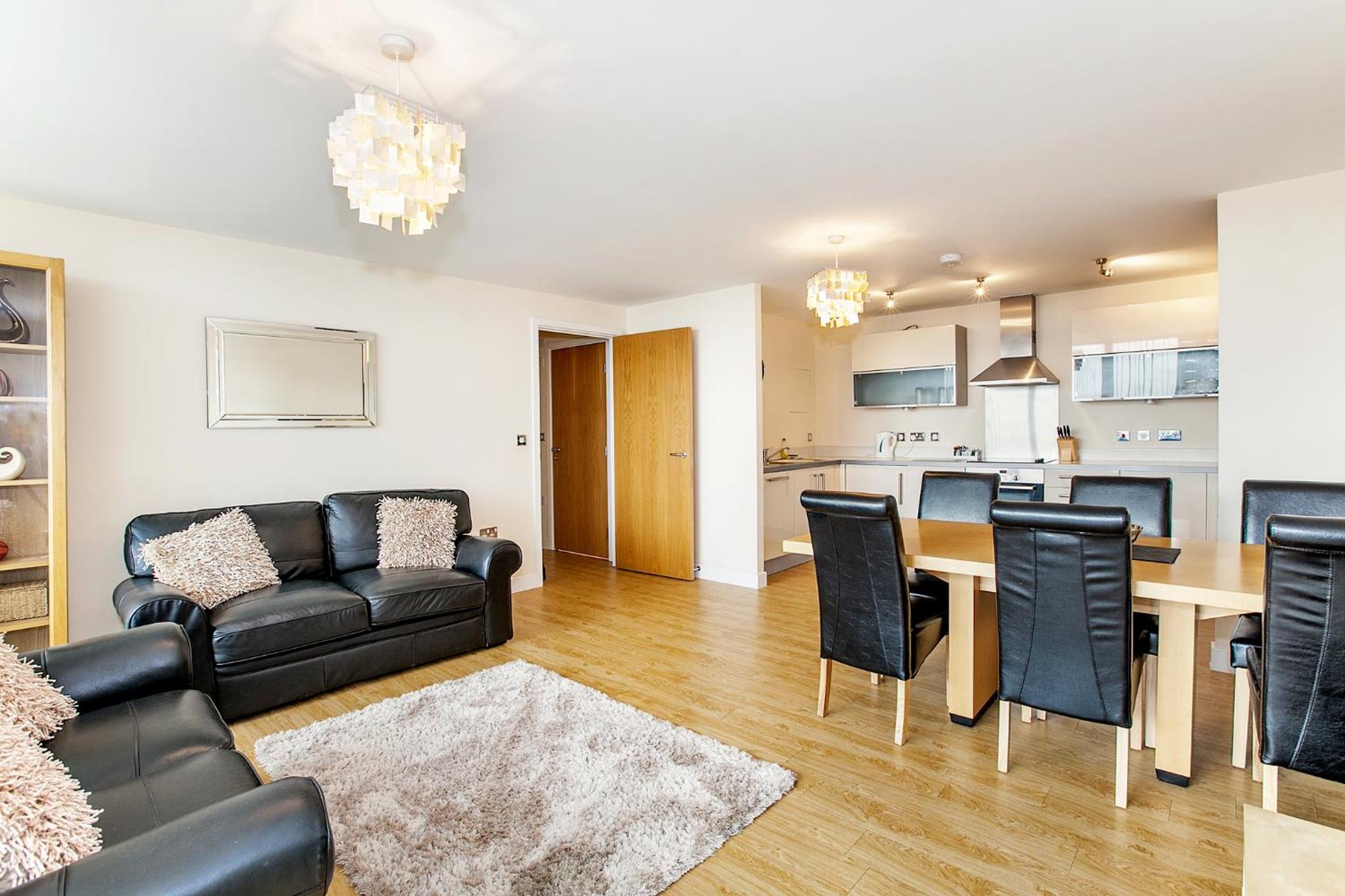 The Vizion is located in Milton Keynes, featuring a peaceful and refreshing rooftop water gardens and superb quality throughout. Each spacious 1, 2 and 3 bedroom apartment has been designed, decorated and furnished to chic designer standards. Guests can relax with a soothing drink on your own private balcony, and admire the view of the city or Vizion’s glorious sky-high water gardens. Vizion is located in just the right place for guests to benefit from everything that’s good about Milton Keynes. MK train station is within realistic walking distance (although buses and taxis are readily available) and a short walk in the other direction takes guests to the famous mile-long indoor shopping mall. The rooms are equipped with modern amenities such as cable/satellite tv, cots on request, hairdryer, television and Wi-Fi. If guests want to cook in, kitchens are equipped with full sized, top quality appliances and there is a huge Sainsbury’s superstore next door. At Vizion guests truly are spoilt for choice for dining out, and here they have what many consider to be MK’s finest dining-out choices of all - at The Hub, just across the road.