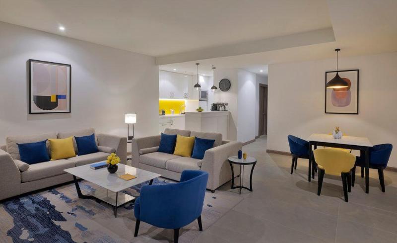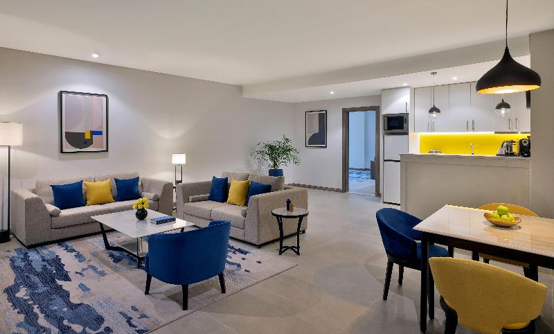 En voco® Al Khobar, encontrarás un estilo contemporáneo combinado con una cálida hospitalidad y una excelente ubicación. Estamos a cinco minutos del centro de negocios de la Provincia Oriental y a un corto trayecto en coche del paseo marítimo de Khobar Sea Front y de las boutiques de moda de Dhahran Mall. Nuestro acogedor hotel facilita la vida tanto a los viajeros de negocios como a las familias que buscan relajarse. Disponemos de aparcamiento gratuito y seguro, además de instalaciones separadas para hombres y mujeres en nuestro spa y gimnasio. Las acogedoras habitaciones cuentan con un diseño elegante y ropa de cama de calidad, así como duchas vigorizantes en amplios baños de mármol. También encontrarás escritorios ejecutivos y wifi gratuito en cada habitación, mientras que los detalles especiales de voco™ incluyen Smart TVs, artículos de tocador perfumados de This Works y grandes ventanales con vistas al centro de la ciudad. Si te alojas en una Suite Ejecutiva, disfrutarás de una sala de estar independiente y un jacuzzi. Además del servicio de habitaciones las 24 horas, tenemos tres restaurantes a tu disposición durante todo el día.