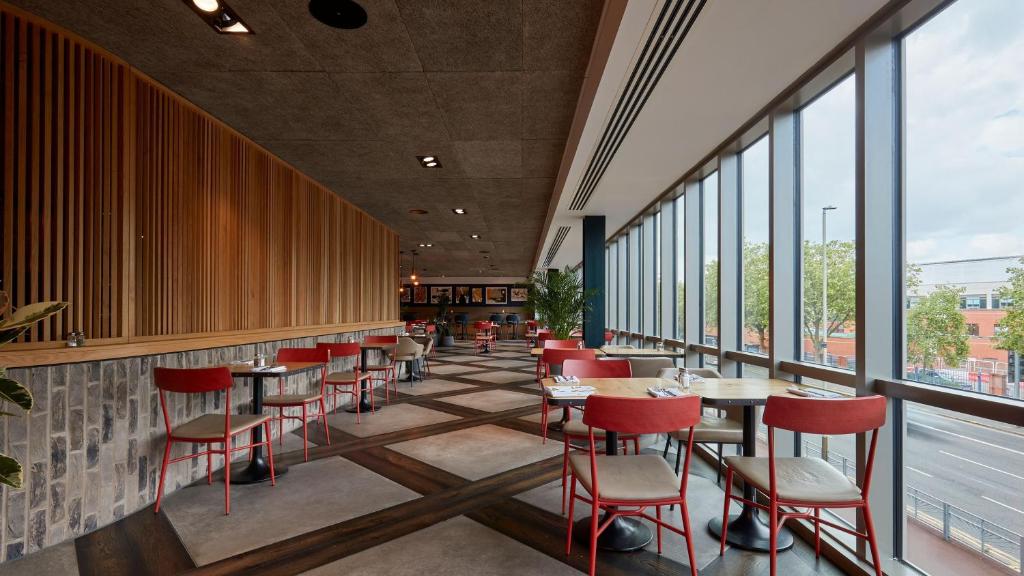 Desde nuestro vibrante centro Grandstand, diseñado para trabajar, divertirse y socializar, hasta nuestro restaurante Lair que sirve delicias de temporada, voco Leicester ofrece una experiencia elevada pero acogedora. Ya sea que esté relajándose en nuestro versátil bar y salón o planeando un evento en nuestros espacios flexibles, encontrará todo adaptado a sus necesidades.