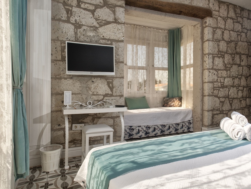 Si te alojas en Vodina Hotel, en Çesme (Alacati), estarás a pocos pasos de Mezquita de Pazaryeri y a unos minutos de Playa de Ilica. Este hotel se encuentra cerca de Alacati Marina y de Playa Alacati. Te sentirás como en tu propia casa en una de las 7 habitaciones con aire acondicionado, minibar y televisor de pantalla plana. La conexión a Internet wifi gratis te mantendrá en contacto con los tuyos; también podrás ver tu programa favorito en el televisor con canales por satélite. El baño privado con ducha está provisto de artículos de higiene personal gratuitos y secador de pelo. Las comodidades incluyen caja fuerte y escritorio, además de un servicio de limpieza disponible todos los días. Elige entre las numerosas instalaciones recreativas ofrecidas, que incluyen piscina al aire libre y bicicletas de alquiler. Se ofrece además conexión a Internet wifi gratis, televisor en zonas comunes y asistencia turística y para la compra de entradas. Mientras te das un chapuzón puedes pedir tu bebida favorita en el bar de la piscina. Todos los días se sirve un desayuno completo gratuito. Tendrás periódicos gratuitos en el vestíbulo, servicio de recepción 24 horas y biblioteca a tu disposición. Hay un aparcamiento sin asistencia gratuito disponible.