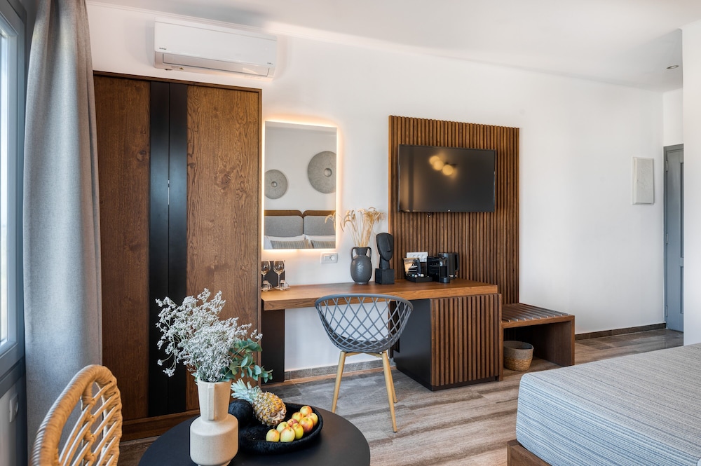 "Instalaciones y servicios incluidos Aire acondicionado, Conexión Wi-Fi, estacionamiento, Limpieza diaria, Caja fuerte y piscina exterior.Las habitaciones cuentan con aire acondicionado, conexión Wifi, televisión, baño, minibar, secador de pelo, caja fuerte, té/café. Dirección: Oia Santorini"