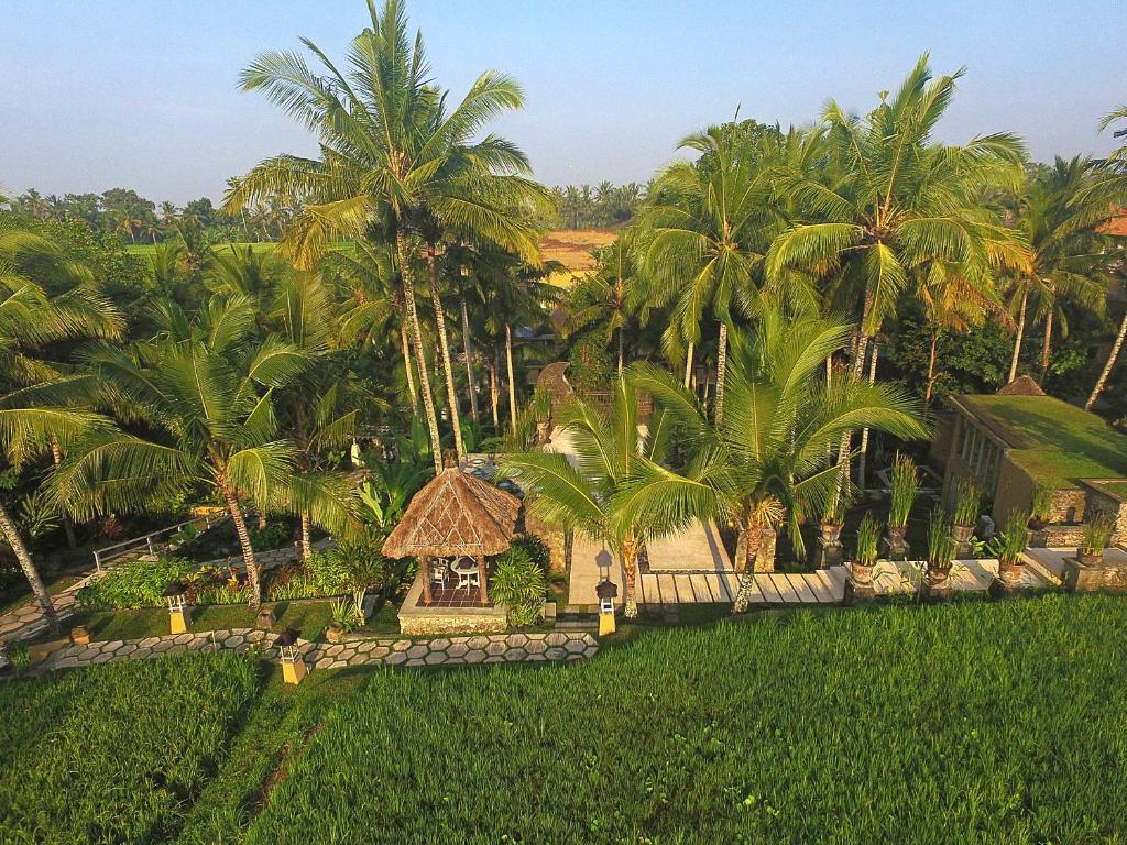 Ubicación - El complejo está situado en medio de preciosos campos de arroz. Está a sólo 1 hora en coche del aeropuerto internacional y a 5 minutos de la zona comercial y de Ubud, el corazón cultural y artístico de Bali. El Monkey Forest está a 10 minutos en coche y Denpasar, a 45 minutos.. Instalaciones - El resort fue construido en el año 1994. El complejo turístico ofrece a los huéspedes un total de 16 habitaciones. En el alojamiento los huéspedes son recibidos en el vestíbulo con servicio de recepción las 24 horas y servicio de registro y salida las 24 horas. Las instalaciones incluyen una caja fuerte y una oficina de cambio. La conexión Wi-Fi en las zonas públicas permite a los viajeros mantenerse en contacto con el mundo exterior. En cuanto a opciones gastronómicas, el complejo de vacaciones cuenta con un restaurante, un comedor, una sala de desayunos y un bar. Además, hay un jardín. Aquellos que viajen con vehículo propio pueden dejarlo en el aparcamiento del resort. Hay un garaje para bicicletas a disposición de los huéspedes (por un cargo extra). También hay asistencia médica, servicio de habitaciones y una lavandería. Se ofrece servicio de traslado. Los huéspedes más activos, con ganas de descubrir los alrededores en bicicleta, sabrán apreciar el servicio de alquiler de bicicletas.. Habitaciones - Se ofrecen habitaciones con aire acondicionado, un ventilador y un cuarto de baño. En la mayoría de las habitaciones es posible disfrutar de las vistas desde un balcón. Los huéspedes podrán dormir cómodamente en una cama doble. Además, hay una caja fuerte y un minibar. Asimismo, hay disponibles una mini nevera y una cafetera/tetera. Para que el huésped disfrute de un confort óptimo, se ofrecen conexión a Internet, un teléfono y Wi-Fi. Las comodidades de las habitaciones también incluyen zapatillas de casa. Los cuartos de baño están provistos de una ducha y una bañera. Hay a disposición un secador de pelo y albornoces para el uso diario. El complejo turístico ofrece habitaciones de no fumadores.. Deporte y ocio - Los días más calurosos, los huéspedes pueden disfrutar de un refrescante chapuzón en la piscina cubierta o la piscina al aire libre. Las tumbonas invitan a tomar el sol. La bañera de hidromasaje en la zona de baño promete una relajación total. Se ofrecen diversas actividades como, por ejemplo, bicicleta/bicicleta de montaña, yoga, un spa, una sauna, un salón de belleza, masajes y un solárium. Los servicios ofrecidos incluyen un programa de entretenimiento para niños con numerosas actividades. Copyright GIATA 2004 - 2016. Multilingual. Comidas - El alojamiento ofrece, como servicio gastronómico, la posibilidad de reservar alojamiento con desayuno y media pensión. Los huéspedes pueden escoger entre desayuno, almuerzo y cena.. Tarjetas de crédito - En el complejo de vacaciones se aceptan las siguientes tarjetas de crédito: American Express, Visa, Diners Club, JCB y MasterCard..