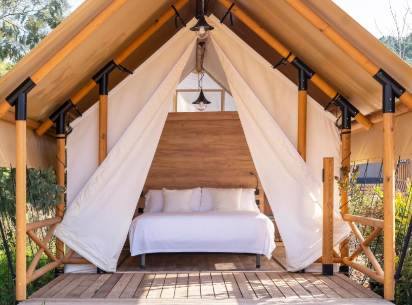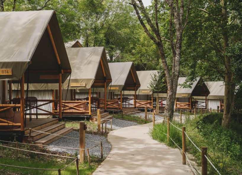 El Wecamp San Sebastián, situado en plena provincia de Gipuzkoa, ofrece una experiencia de glamping única cerca de la costa vasca. Con cómodas y modernas tiendas semipermanentes, cada unidad dispone de camas amplias, mobiliario de diseño y zona privada para relajarse al aire libre. El recinto combina un ambiente natural con instalaciones bien cuidadas: baños compartidos de alta calidad, área de cocina comunitaria y espacios de convivencia ideales para grupos y familias. Además, su ubicación estratégica permite acceder fácilmente a las playas de Donostia y disfrutar de actividades al aire libre como senderismo o surf. Una opción perfecta para quienes buscan confort y contacto con la naturaleza en un entorno emblemático.