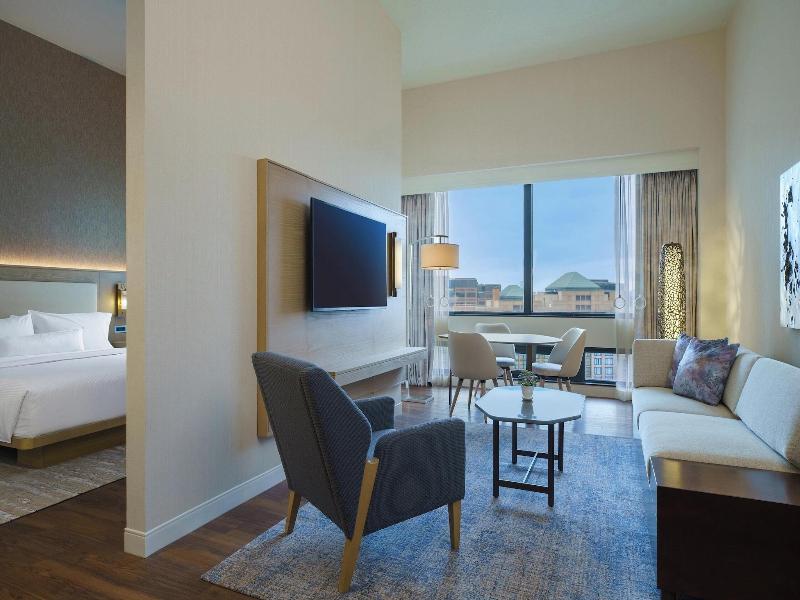 Aprovecha las opciones de recreación, como un gimnasio abierto las 24 horas, o disfruta de la vista desde la terraza y el jardín. Este hotel también ofrece acceso inalámbrico a internet de cortesía, servicios de conserjería y una tienda de regalos/puesto de periódicos. Los huéspedes pueden desplazarse en el servicio de traslado gratuito, que opera en un radio de 4. 8 km (3 millas). Para el almuerzo o la cena, visita Benchmark Gatropub, un bar/salón especializado en cocina estadounidense. También puedes comer en la cafetería y hay servicio a la habitación las 24 horas. Se sirve desayuno buffet todos los días de 6:00 a 10:00 h por un cargo adicional. Entre los servicios destacados se incluyen un centro de negocios abierto las 24 horas, periódicos gratuitos en el vestíbulo y servicio de tintorería/lavandería. ¿Estás planeando un evento en Rosemont? Este hotel dispone de 1121 metros cuadrados (12 069 pies cuadrados) de espacio, que incluyen un centro de conferencias y 46 salas de reuniones. Se ofrece un servicio de traslado de ida y vuelta al aeropuerto de forma gratuita en horarios limitados.