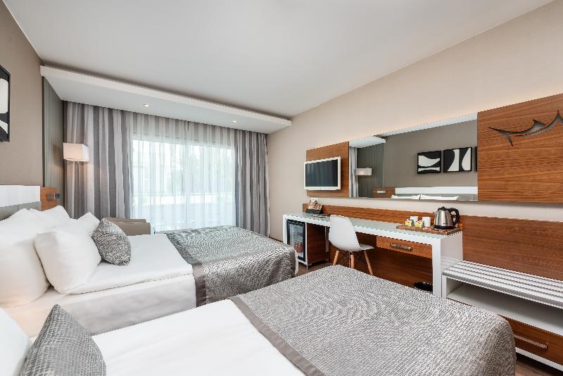 Decorado con un estilo contemporáneo, este hotel familiar se encuentra en la zona de Fugla, a 21 km al oeste de Alanya. Las comodidades incluyen un spa con piscina cubierta, una piscina al aire libre, una piscina independiente con toboganes y una zona de playa privada. Hay transporte público disponible en la carretera principal, a aproximadamente un minuto a pie del hotel, con acceso a los pueblos vecinos y al complejo turístico de Alanya.