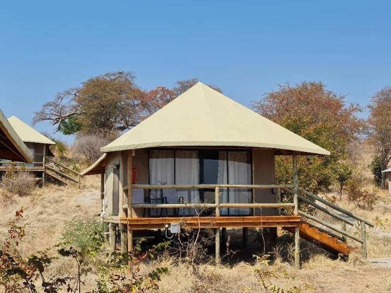 Xhabe Safari Lodge, situado en la zona de Muchenje, domina la llanura aluvial del río Chobe y la frontera con Namibia en el distrito de Chobe. Disfrutarás de impresionantes vistas del río Chobe, baobabs, puestas de sol y abundante vida silvestre. Ubicado a cinco kilómetros de la parte este del Parque Nacional Chobe, el lodge ofrece fácil acceso a los Parques Nacionales Savuti, Linyanti y Moremi. También se encuentra a cinco kilómetros del cruce fronterizo de Ngoma hacia Namibia y a aproximadamente 65 kilómetros del Aeropuerto Internacional de Kasane, con un recorrido panorámico por el Parque Nacional Chobe que te permitirá avistar elefantes y otros animales. El lodge ofrece ocho lujosas habitaciones tipo tienda, con capacidad para 16 huéspedes. Cada habitación cuenta con camas super king (dos camas de ¾), baños en suite con inodoros y duchas separados, y terrazas privadas con vistas al río Chobe y la frontera con Namibia. Las comodidades incluyen aire acondicionado, artículos de tocador ecológicos, ropa de cama y toallas de alta calidad, sillas cómodas, amplio espacio para colgar ropa, portaequipajes y enchufes. Para aquellos que buscan una experiencia de camping más tradicional, hay cuatro zonas de acampada con bloques de servicios separados para hombres y mujeres con duchas de agua caliente e inodoros. Cada zona de acampada incluye un área de braai y cubos de basura.
