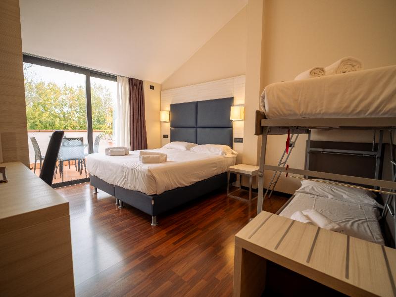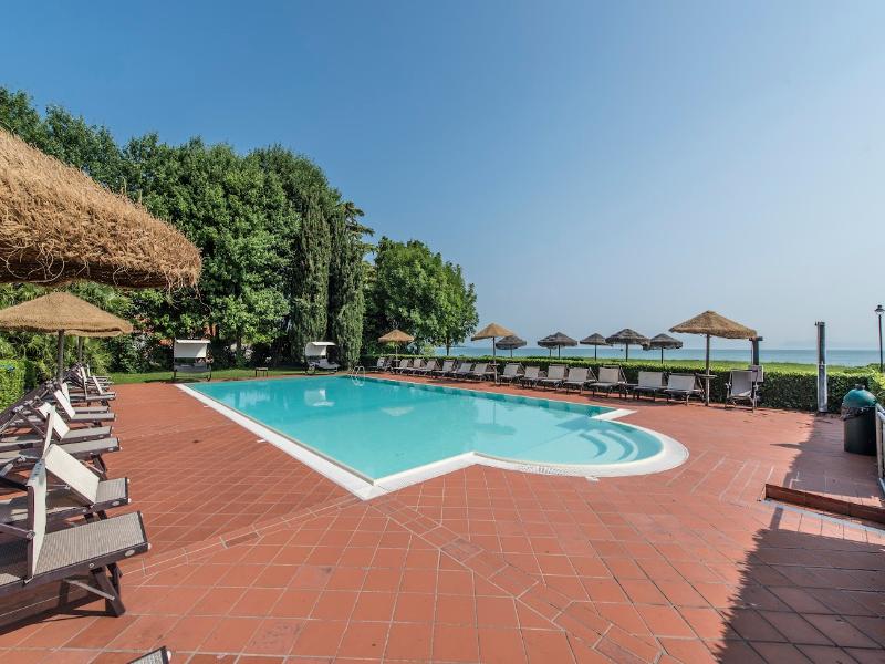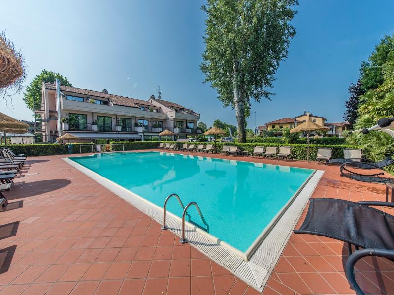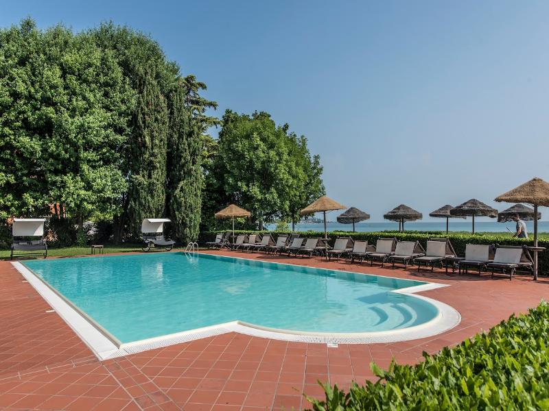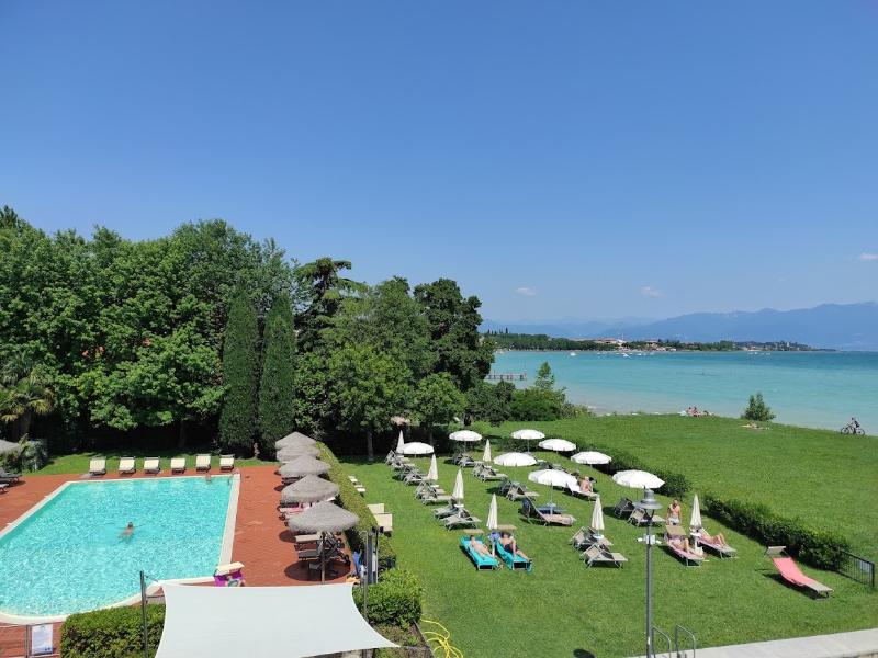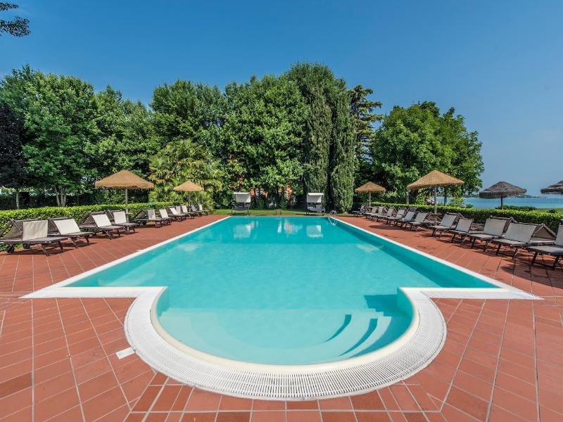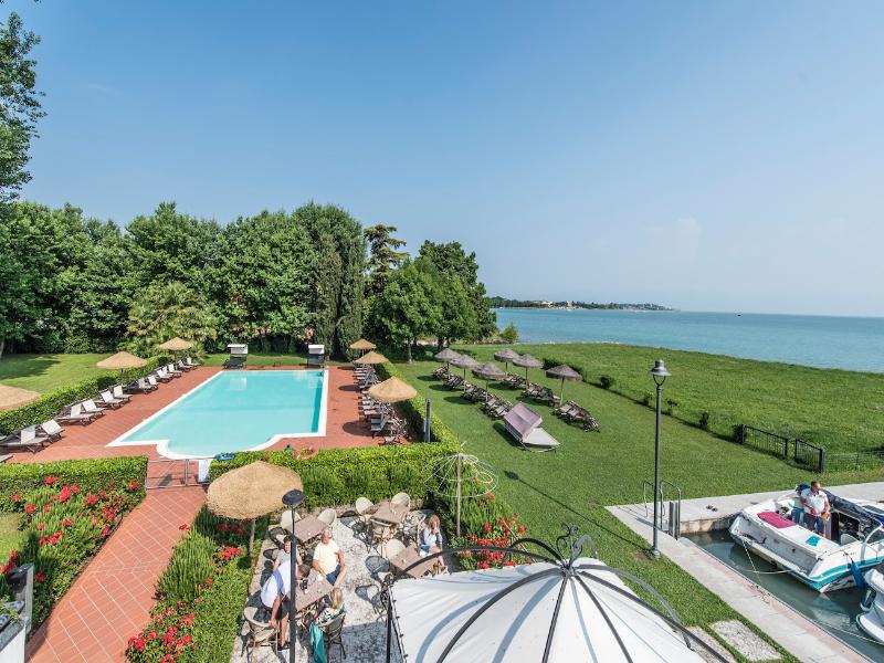 El moderno hotel se encuentra inmerso en un gran parque, en una ubicación privilegiada a orillas del lago. Está a solo unos pasos del Sirmione Spa y a 30 minutos a pie del casco antiguo. Las conexiones con la red de transporte público están a unos 300 m y la estación de tren se encuentra a unos 7 km del hotel. El aeropuerto de Verona está situado a una distancia aproximada de 25 km, mientras que el aeropuerto de Orio al Serio y el aeropuerto de Malpensa se encuentran a unos 90 km y 180 km respectivamente. El hotel fue construido recientemente según los últimos criterios de diseño, con todas las comodidades modernas y la mejor tradición hotelera. Con un total de 29 habitaciones, este establecimiento con aire acondicionado recibe a sus huéspedes en un vestíbulo con servicio de salida 24 horas. Hay conexión a internet wifi disponible en todo el edificio. Las instalaciones a disposición de los huéspedes incluyen ascensor, bar, restaurante, salas de conferencias, aparcamiento, garaje y alquiler de bicicletas. Por un suplemento, los huéspedes pueden disfrutar del servicio de habitaciones. Las habitaciones están elegantemente amuebladas, con un amplio balcón con vistas al lago, baño privado con ducha y secador de pelo, suelo de parquet, nevera, TV LCD con canales vía satélite/cable y caja fuerte. Los dormitorios están equipados con camas dobles. Además, cada habitación cuenta con teléfono de línea directa, conexión a internet, aire acondicionado y calefacción central. El hotel ofrece una piscina panorámica al aire libre con vistas al lago, un gimnasio con sauna y jacuzzi, tenis de mesa y uso gratuito de bicicletas. Chervò Golf está a unos 2, 5 km del hotel. El restaurante a la carta ofrece cocina típica local. En verano, las comidas se sirven en la terraza. Todas las mañanas se sirve un desayuno bufé.