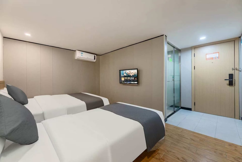 Si te alojas en Yimi Hotel Changshou Metro Branch, en Cantón (Liwan), estarás a pocos minutos de Ancestral Temple of the Chen Family y Museo de Arte Popular de Guangdong. Este hotel se encuentra cerca de Liwan Lake Park y de Renwei Temple.Habitaciones La conexión a Internet wifi gratis te mantendrá en contacto con los tuyos; también podrás ver tu programa favorito en el televisor con canales por cable. El baño privado con ducha está provisto de artículos de higiene personal gratuitos y zapatillas. Las comodidades incluyen cortinas opacas, además de un servicio de limpieza disponible todos los días.