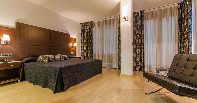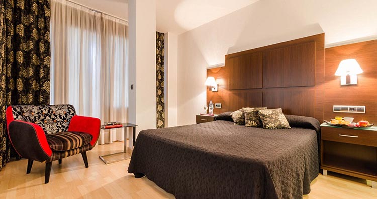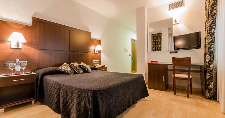 Las habitaciones disponen de Aire Acondicionado Independiente, Calefacción Independiente, Teléfono, TV, Terraza, Insonorización, Secador de Pelo, Bañera, Wi-Fi y 1 , y entre nuestros servicios e instalaciones disponemos de Aire Acondicionado, Ascensores, Calefacción y Bar Cafetería. Además cuentan con Personal Plurilingüe, Wi-Fi, Información Turística, Máquinas de Vending, Caja Fuerte en Recepción y Garaje. Actividades y relax: . Cocina: Mediterránea. . Tarjetas de crédito: Euro/Mastercard, Maestro y Visa.