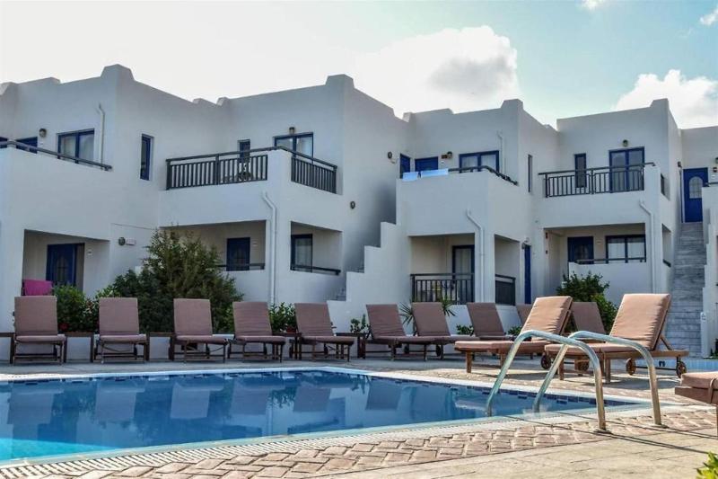 Disfruta de las instalaciones recreativas, que incluyen una piscina al aire libre de temporada, una terraza y un jardín. Puedes comer en el SNACK BAR del Yria Beach Hotel o tomar un refrigerio rápido en el snack bar/cafetería. Relájate con tu bebida favorita en el bar o chiringuito. Se sirve un desayuno bufé gratuito todos los días de 8:00 a 10:30. La recepción tiene un horario limitado. Descansa en una de las 38 habitaciones con aire acondicionado, que incluyen televisores de pantalla plana y wifi gratis. El baño privado con ducha está provisto de artículos de tocador gratuitos y secadores de pelo. También hay caja fuerte y servicio de limpieza diario. El Yria Beach Hotel está situado en la playa en Hersonissos, a 15 minutos en coche del puerto de Heraklion y del Museo Arqueológico de Heraklion. Este hotel de playa está a 20, 5 km de la playa de Stalis y a 14 km del parque acuático Star Beach. Las atracciones cercanas incluyen el Dinosauria Park (a 2, 7 km), la playa de Gouves (a 3 km) y el parque acuático Watercity (a 4, 2 km). El aeropuerto principal más cercano es el aeropuerto Nikos Kazantzakis (HER), a 11, 1 km de distancia.