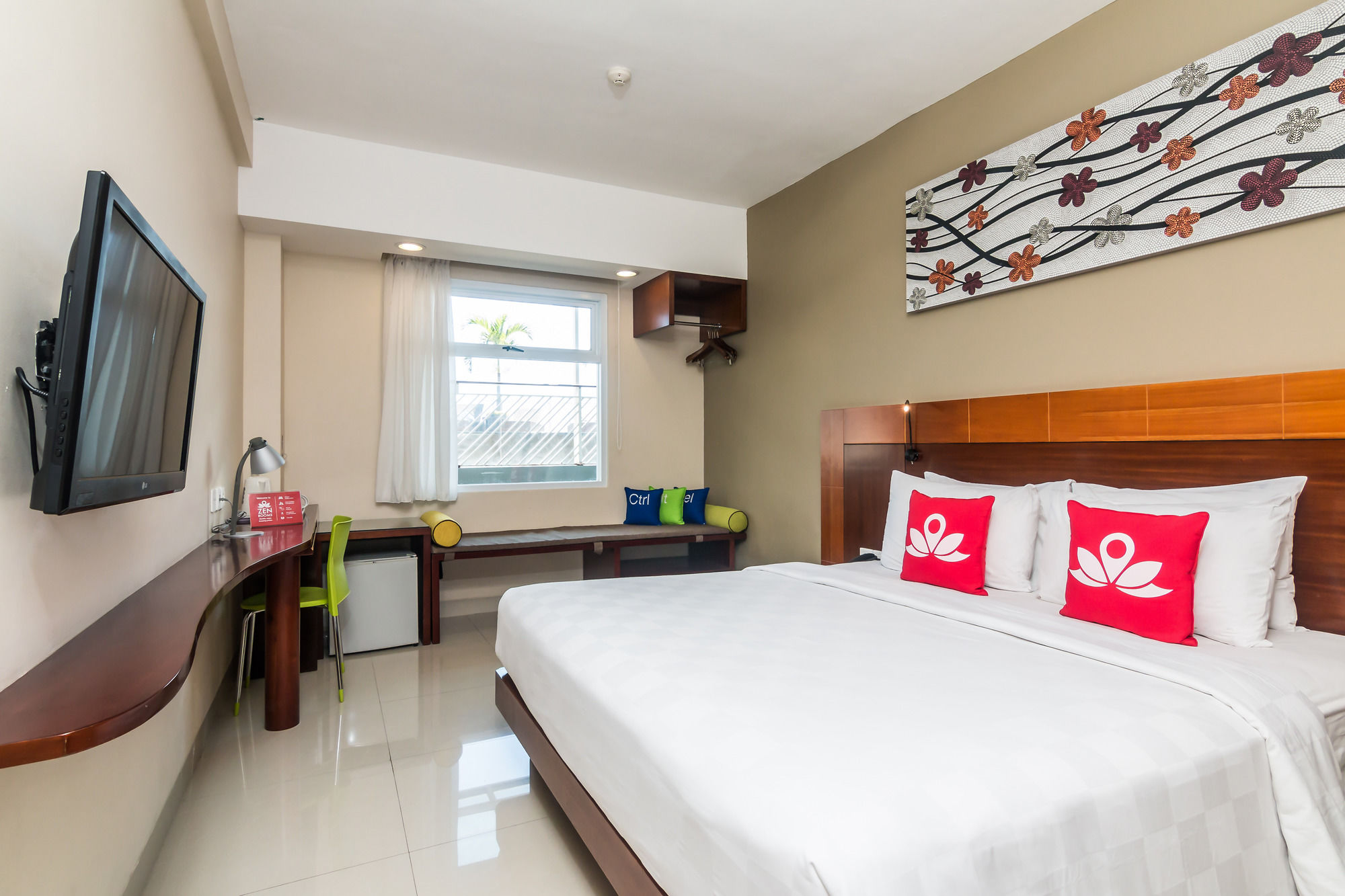 Desde ZEN Rooms Tuban Airport, en Kuta, tendrás fácil acceso a Centro comercial Supernova y a Playa de Kuta. Este hotel se encuentra cerca de Centro comercial Lippo y de Waterbom Park.Habitaciones Te sentirás como en tu propia casa en una de las 6 habitaciones con aire acondicionado y televisor de pantalla plana. La conexión a Internet wifi gratis te mantendrá en contacto con los tuyos; también podrás ver tu programa favorito en el televisor con canales por cable. El cuarto de baño está provisto de ducha y artículos de higiene personal gratuitos. Las comodidades incluyen caja fuerte y escritorio, además de un servicio de limpieza disponible todos los días.Servicios Elige entre las numerosas instalaciones recreativas ofrecidas, que incluyen piscina al aire libre y gimnasio.Para comer Prueba deliciosos platos sin moverte de este hotel, que cuenta con un restaurante y ofrece servicio de habitaciones las 24 horas. Apaga la sed con tu bebida favorita en el bar o lounge.Servicios de negocios y otros Pagando un pequeño suplemento podrás aprovechar prestaciones como servicio de transporte al aeropuerto (ida y vuelta) de pago y aparcamiento sin asistencia gratuito.