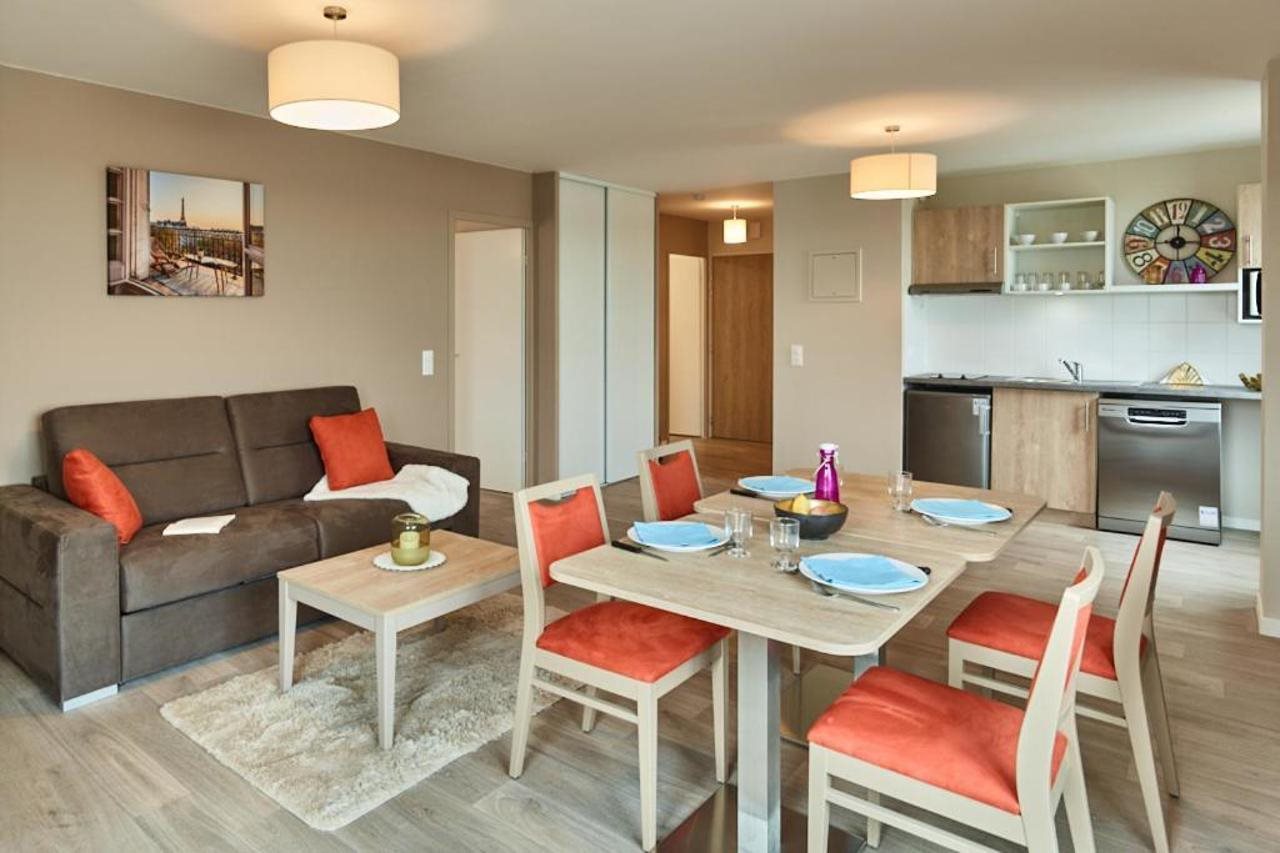 Las instalaciones y servicios incluyen aparcamiento, salas de reuniones y banquetes (con cargo adicional), ascensor, aire acondicionado y wifi.Las habitaciones disponen de baño, cocina americana, wifi, nevera, escritorio y televisión.Dirección: 4 Rue Diderot, 92150 Suresnes