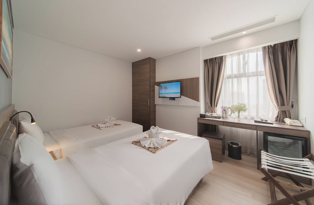 Al alojarse en el Zenia Boutique Hotel Nha Trang (Playa Tran Phu), estará a pocos minutos de Vincom Plaza Le Thanh Ton y cerca de la Torre Tram Huong. Este hotel se encuentra muy cerca del Mercado Nocturno de Nha Trang y de la Plaza 2 de Abril.Siéntase como en casa en una de las 98 habitaciones con aire acondicionado, minibar y televisor LCD. El acceso inalámbrico a internet gratuito le mantendrá conectado y podrá disfrutar de la programación por cable. Los baños privados incluyen artículos de aseo gratuitos y secador de pelo. Las comodidades incluyen caja fuerte y escritorio, y el servicio de limpieza se ofrece a diario.Aproveche las opciones de ocio, como la piscina al aire libre, y otros servicios, como el acceso inalámbrico a internet gratuito y la asistencia para la compra de entradas y excursiones.Para almorzar o cenar, visite Diamond, un restaurante especializado en cocina local e internacional. También podrá comer en la cafetería y disfrutar del servicio de habitaciones (con horario limitado). Refrésquese con su bebida favorita en el bar.Entre los servicios destacados se incluyen un centro de negocios abierto las 24 horas, servicio de recepción las 24 horas y resguardo de equipaje.